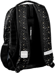 Tri glavne pregrade, sprednji žep na zadrgo in dva stranska mrežasta žepa poskrbijo, da so učbeniki, zvezki, peresnica in steklenica vedno pregledno na svojem mestu. Zlahka sprejme format A4.