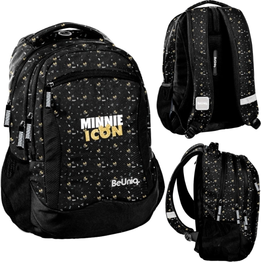 Slogovni nahrbtnik z motivom MINNIE iz kolekcije BeUniq bo razveselil vsakega šolarja. Premišljena organizacija s tremi glavnimi pregradami, sprednjim žepom na zadrgo in parom stranskih mrežastih žepov nudi dovolj prostora za učbenike, malico in steklenico. Nahrbtnik brez težav sprejme format A4.