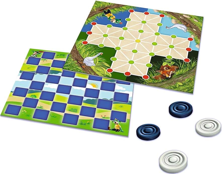 Odkrijte zabaven komplet namiznih iger z motivi serije DRUŽINA TREFÍK – dama in lisica in gosi v eni škatli. Otroci vadijo strateško razmišljanje, načrtovanje potez in fair play. Kakovostna izdelava znamke TREFL, proizvedeno na Poljskem, idealno za 2 igralca od 5 let z igralnim časom 10–20 minut.