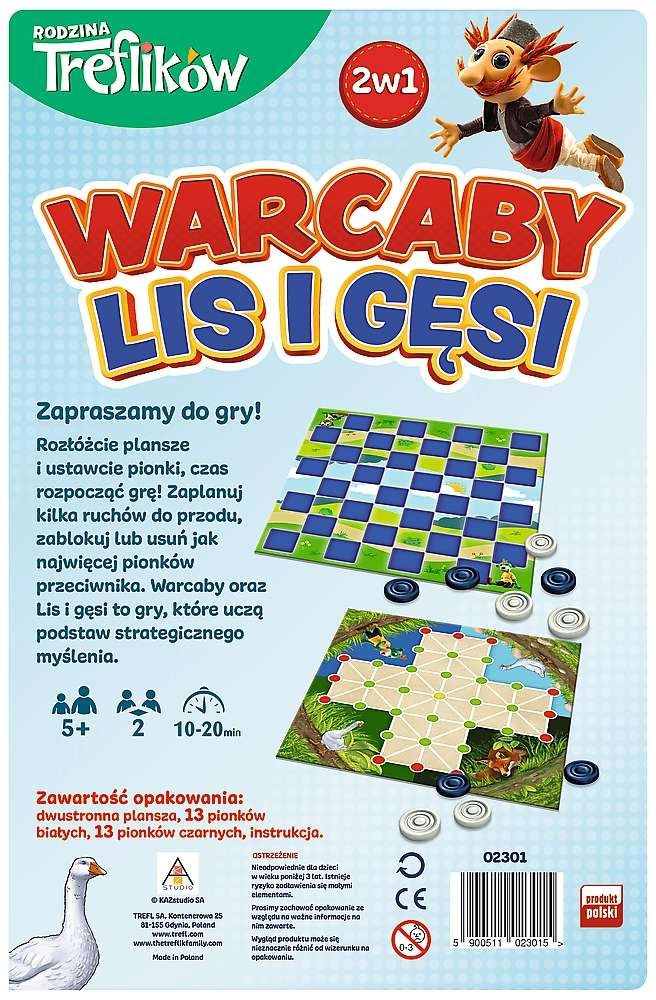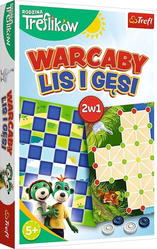 Komplet iger 2v1 prinaša preverjeno klasiko v prijazni otroški izvedbi: damo in napeto igro lisica in gosi. Dovolj je, da razprete obojestransko igralno ploščo, postavite figure in začnete razmišljati nekaj potez vnaprej. Vesele ilustracije z liki iz serije DRUŽINA TREFÍK bodo navdušile mlajše in starejše otroke.