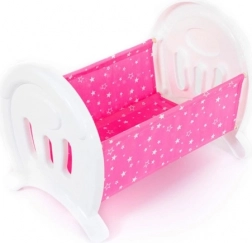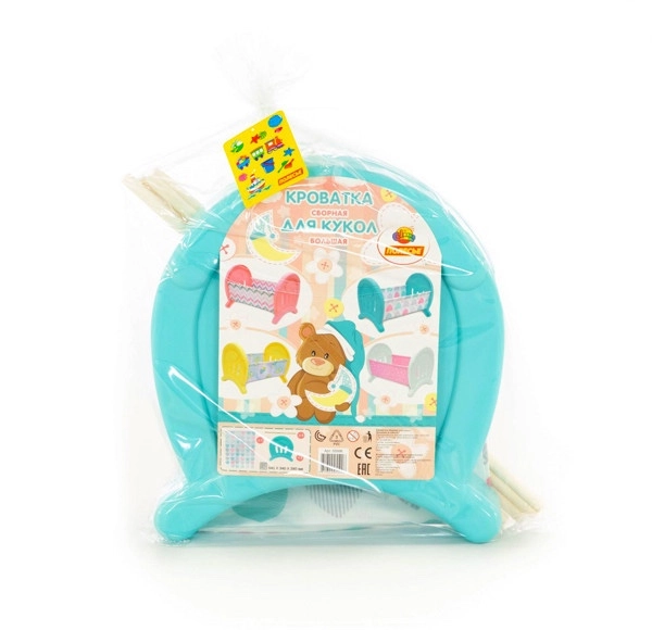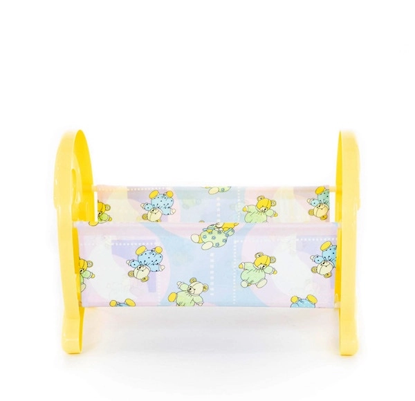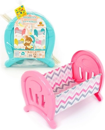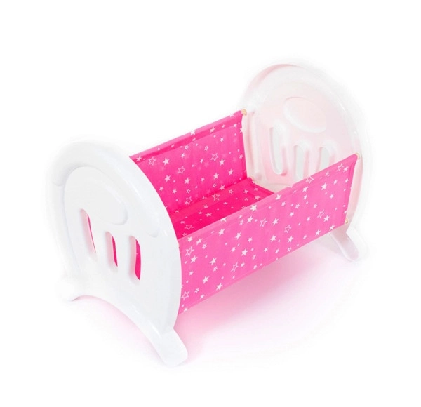 Zložljiva posteljica za punčke združuje trdna plastična čela in mehko tekstilno ležišče, zato je lahka, a hkrati stabilna. Otroci lahko punčko udobno odložijo in jo nežno zibljejo v spanec, kar spodbuja domišljijo in skrbniške veščine.