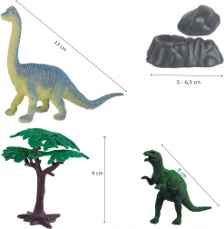 Pester izbor dinozavrov, dreves in kamnov omogoča otrokom ustvarjanje lastnih prazgodovinskih scen ter razvija domišljijo in vztrajnost pri igri.