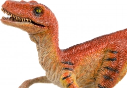 Ta realistična figurica velociraptorja bo navdušila male in velike ljubitelje prazgodovine. Precizna površinska tekstura, oranžno‑rjavo barvanje s črnimi črtami ter izraziti detajli zob in krempljev delujejo izjemno prepričljivo. Gibljiva čeljust in sprednje tace dodajajo interaktivnost in spodbujajo otroško domišljijo.