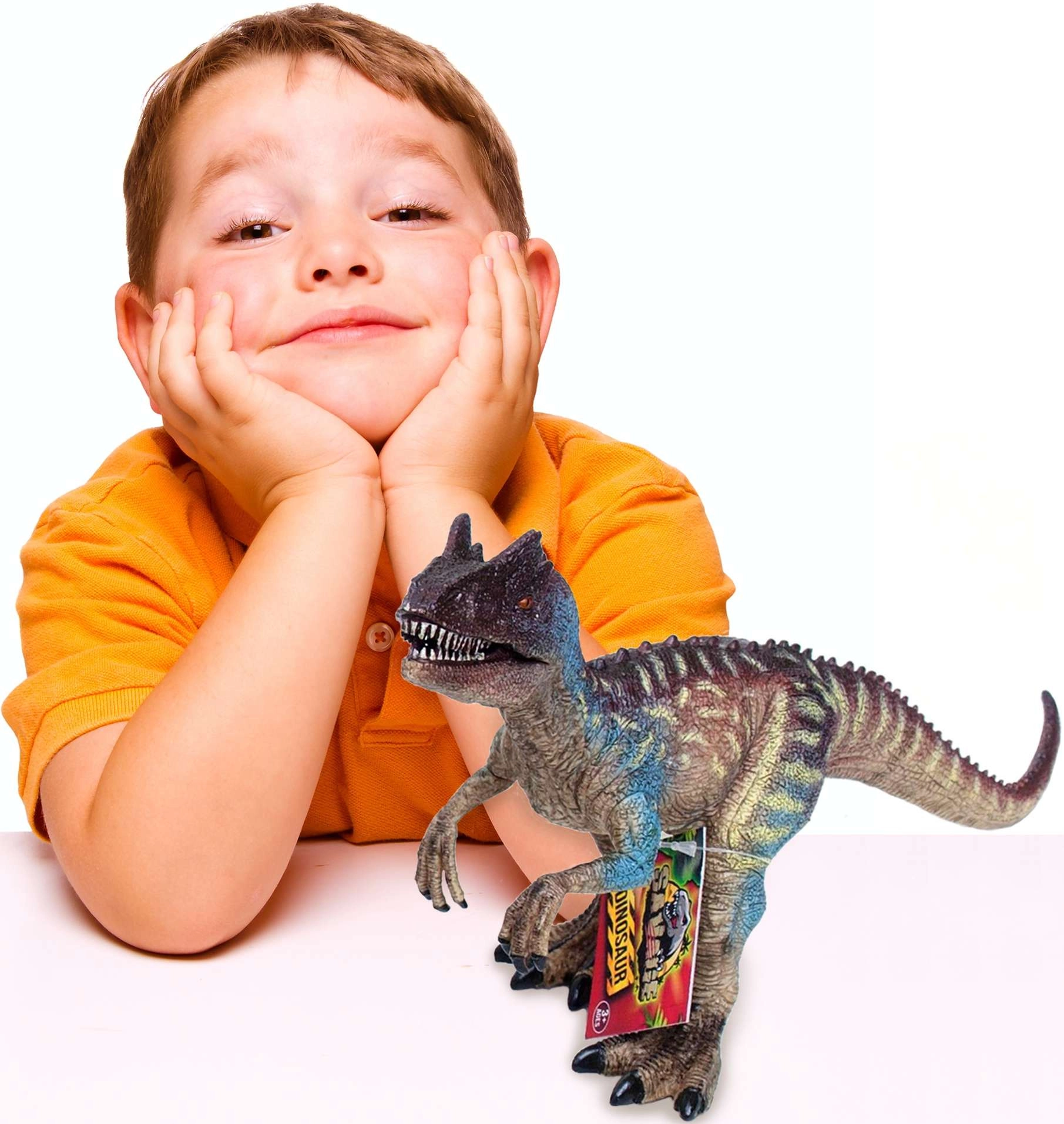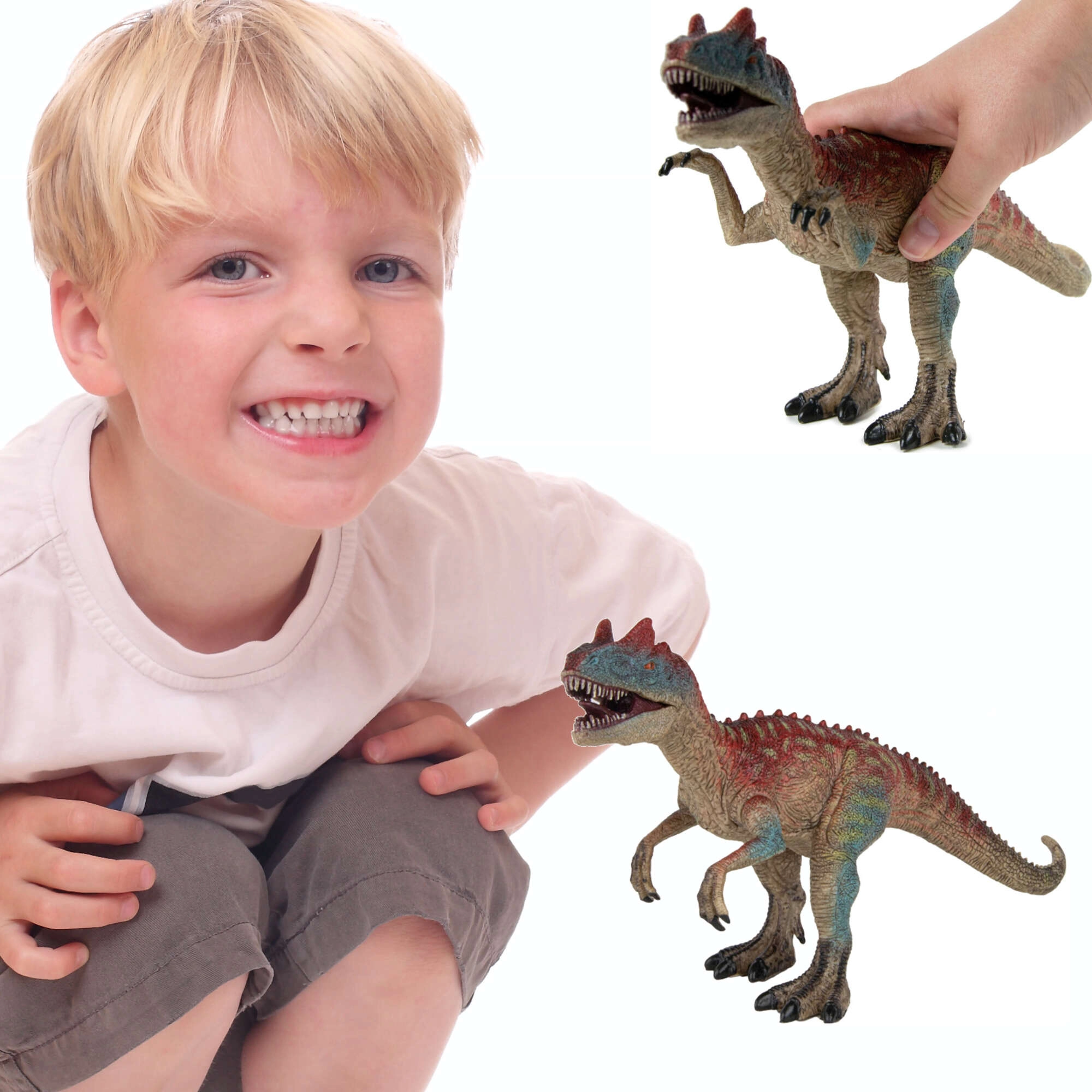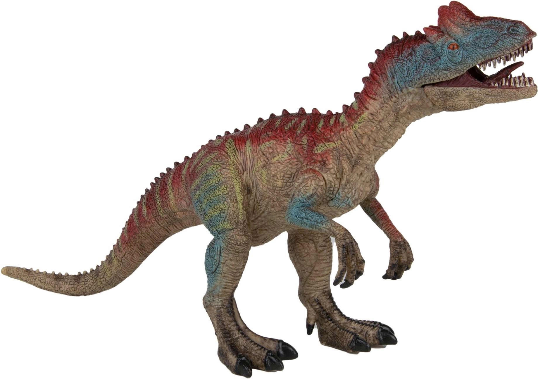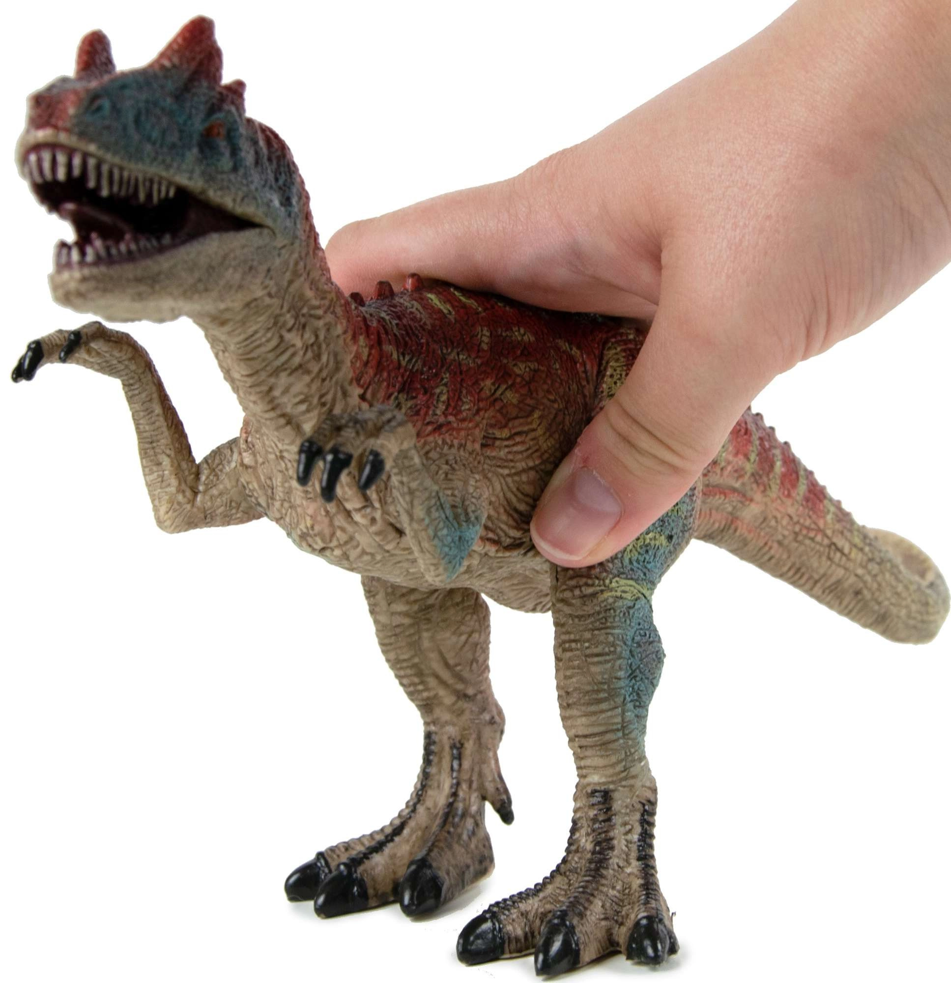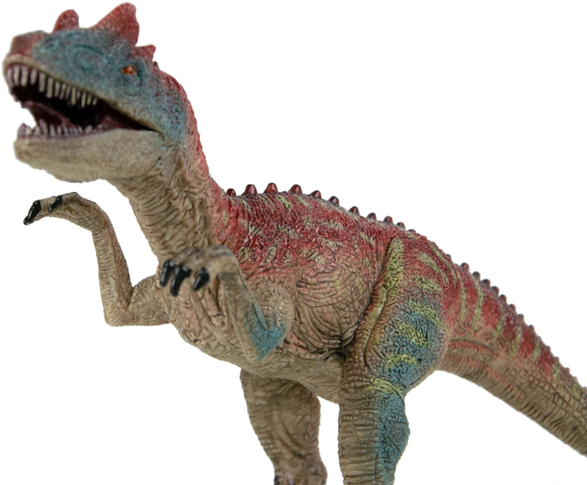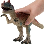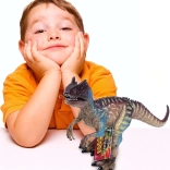 Vstopite v svet prazgodovine z ikoničnim plenilcem Allosaurus. Ta podrobno izdelana figurica v bež barvi z rdečimi in modrimi poudarki izgleda resnično mogočno – od teksture kože, preko majhnih »rožkov« nad očmi, pa do usta, polnih ostrih zob. Zahvaljujoč premični čeljusti in premičnim sprednjim tacam je igra maksimalno avtentična.