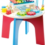 Odkrijte motorično in glasbeno mizo iz kakovostnega lesa, zasnovano za optimalen razvoj otrokovih sposobnosti. Ta vsestranska miza vključuje: