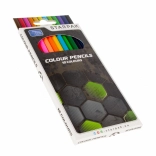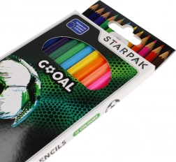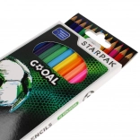 Odkrijte veselje do risanja s kompletom 12 barvnih barvic z nogometnim motivom. Zaradi šesterokotnega profila se barvice udobno držijo, se manj kotale po mizi in omogočajo natančno delo ter nežno senčenje. Predhodno ošiljena jedra in živi pigmenti zagotavljajo lepo, enakomerno prekrivnost.
