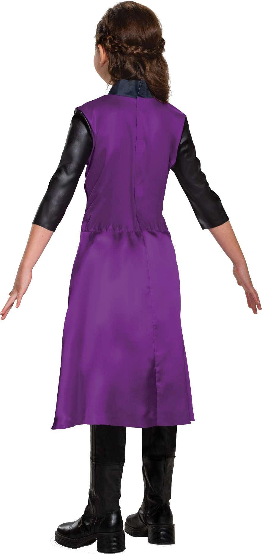 Obleka v elegantnih vijoličnih tonih in satensko črnih elementih je zasnovana tako, da se zlahka obleče in lepo prilega. Lahka in trpežna izvedba iz 100 % poliestra je idealna za otroške vragolije.