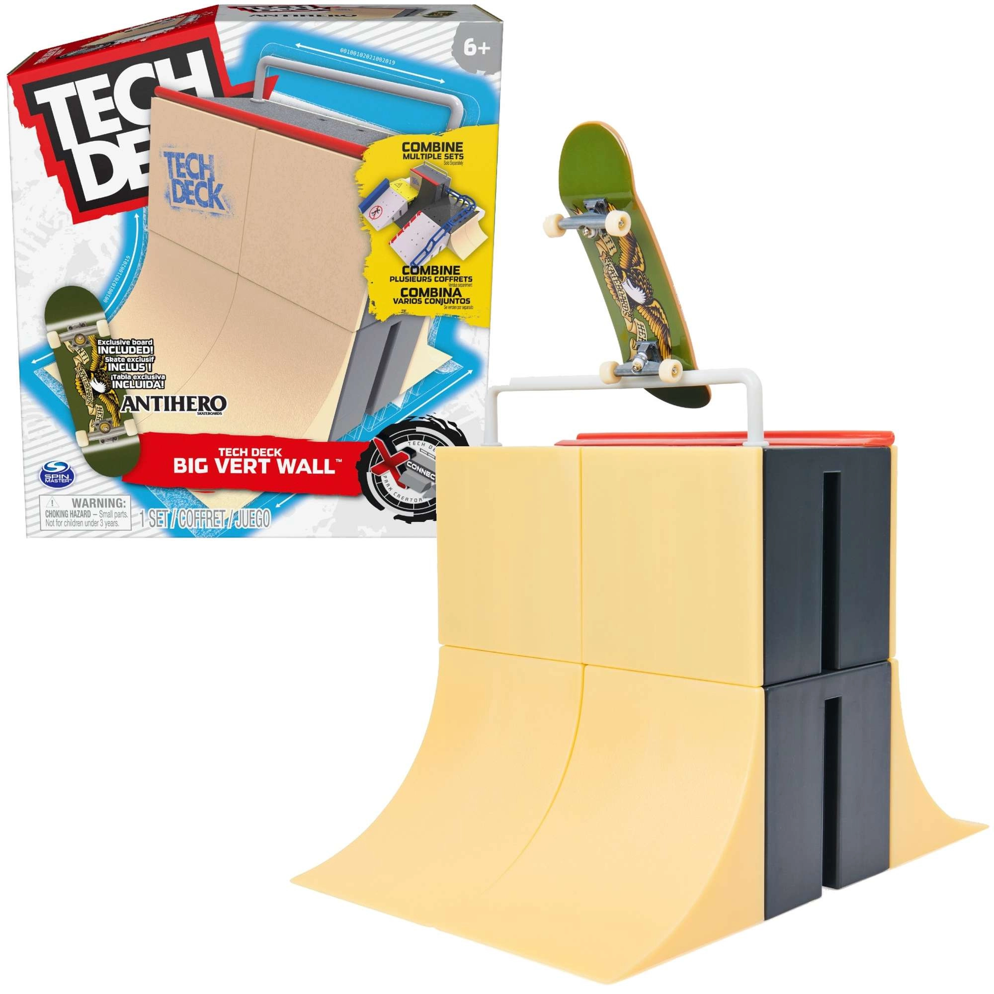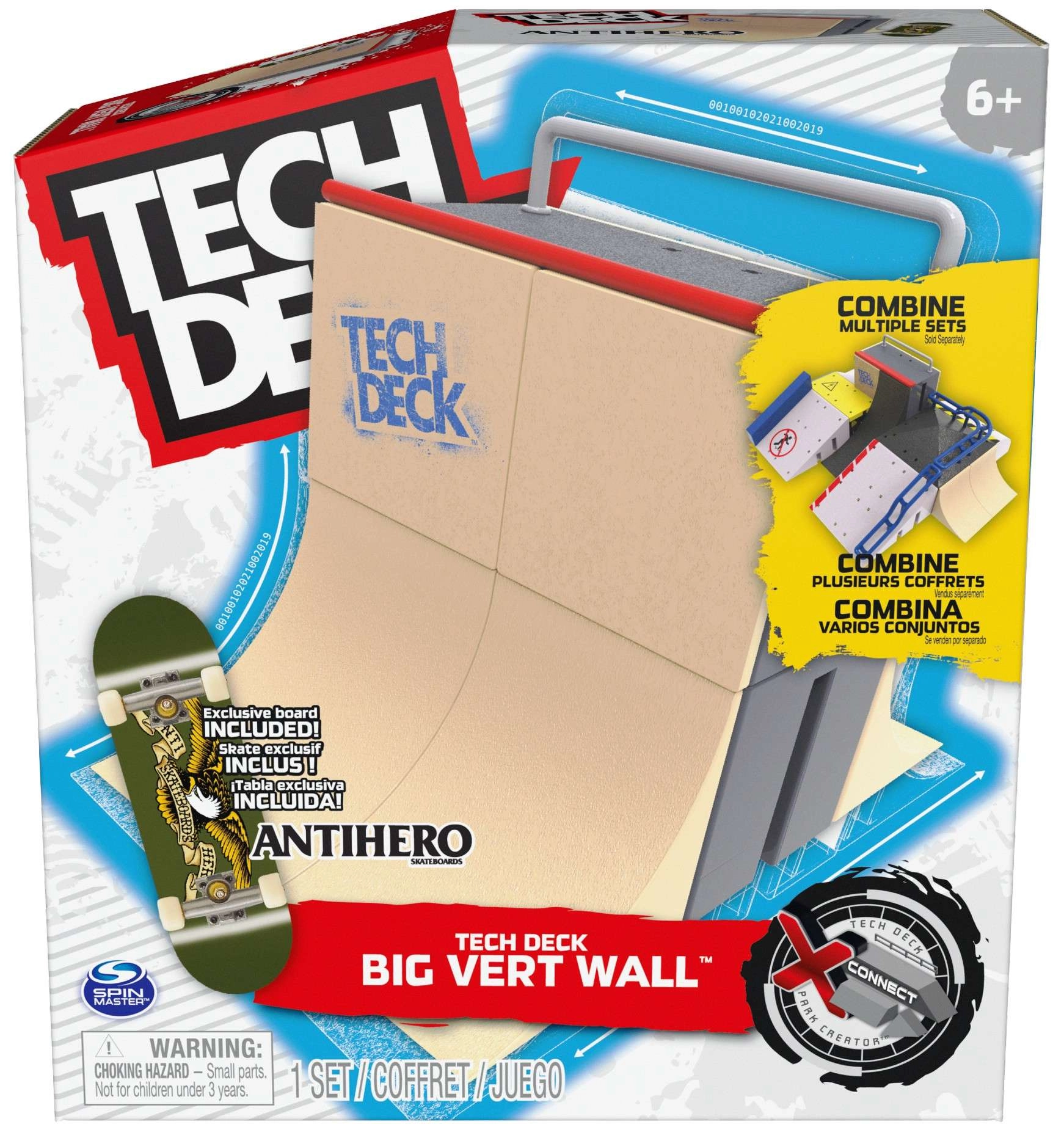 Doživite realistične fingerboard trike z rampo Big Vert Wall iz serije X-Connect in originalnim fingerboardom TECH DECK Antihero. Sistem medsebojno povezljivih ramp omogoča ustvarjanje lastnega parka, treniranje grindov, skokov in flip trikov ter stalno napredovanje vaših veščin. Idealno za začetnike in napredne ljubitelje fingerboardinga.