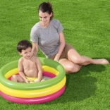 V vročih poletnih dneh ni za vaše najmlajše boljše osvežitve kot v napihljivem bazenčku! Bazenček je primeren kot plitvina za čofotanje. Barvit trikomorni napihljiv bazen, ki je idealen za vrt in bo otrokom zagotovo prinesel veliko veselja. Dno iz mehčanega PVC preprečuje odrgnine in deluje protidrsno.