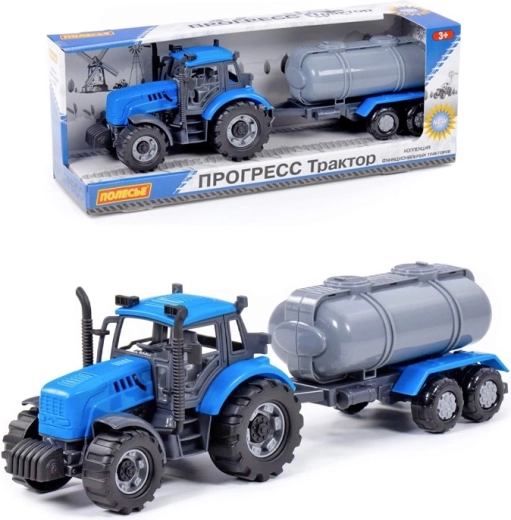 Traktor Progress s cisterno razširi otroško domišljijo z novimi scenariji – od dela na kmetiji do oskrbe z vodo. Zahvaljujoč realističnim podrobnostim in pokrovu motorja, ki se odpira, se lahko otroci počutijo kot pravi mehaniki in vozniki. Inercialni mehanizem zagotavlja bolj gladko gibanje in bolj zabavno vožnjo po različnih podlagah.