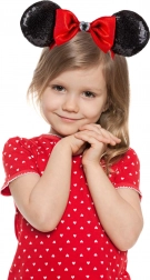 Ta otroški naglavni trak vsako deklico spremeni v priljubljeni lik MINNIE MOUSE. Mehak material v črni in rdeči barvi je prijeten za nošenje, ušeska so oblazinjena za večje udobje, izrazita pentlja z bleščicami pa doda sijaj vsaki zabavi.