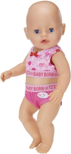 Dva udobna kompleta spodnjega perila BABY BORN za punčke velikosti 43 cm bosta razveselila vsakega malega skrbnika. Rožnata različica navduši z tiskom školjk in hlačkami z vijugastimi črtami, ki spominjajo na valove, modra različica pa z motivom kapljic, ki prikličejo morské luskice. Oblačila so mehka, prijetna in zasnovana za preprosto oblačenje brez nepotrebnega zadrževanja.