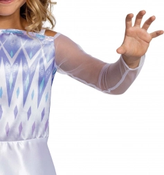 Ta licenčni kostum znamke DISGUISE prinaša otrokom priljubljeno junakinjo naravnost v njihovo omaro. Obleka v odtenkih modre in srebrne z rahlim leskom, s prosojnimi dolgimi rokavi in geometrijskimi “ledenimi” motivi na žepku zvesto povzema film DISNEY FROZEN. Zaradi lahke zasnove in prijetnega materiala se obleka zlahka obleče in udobno nosi.