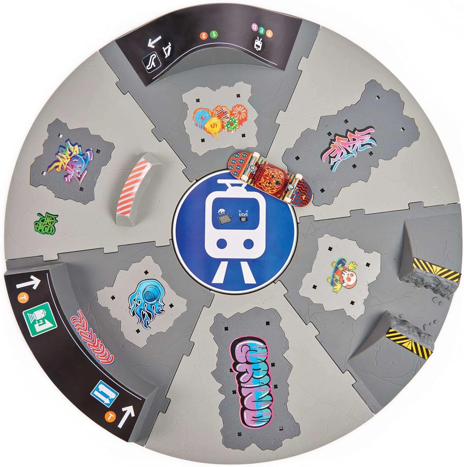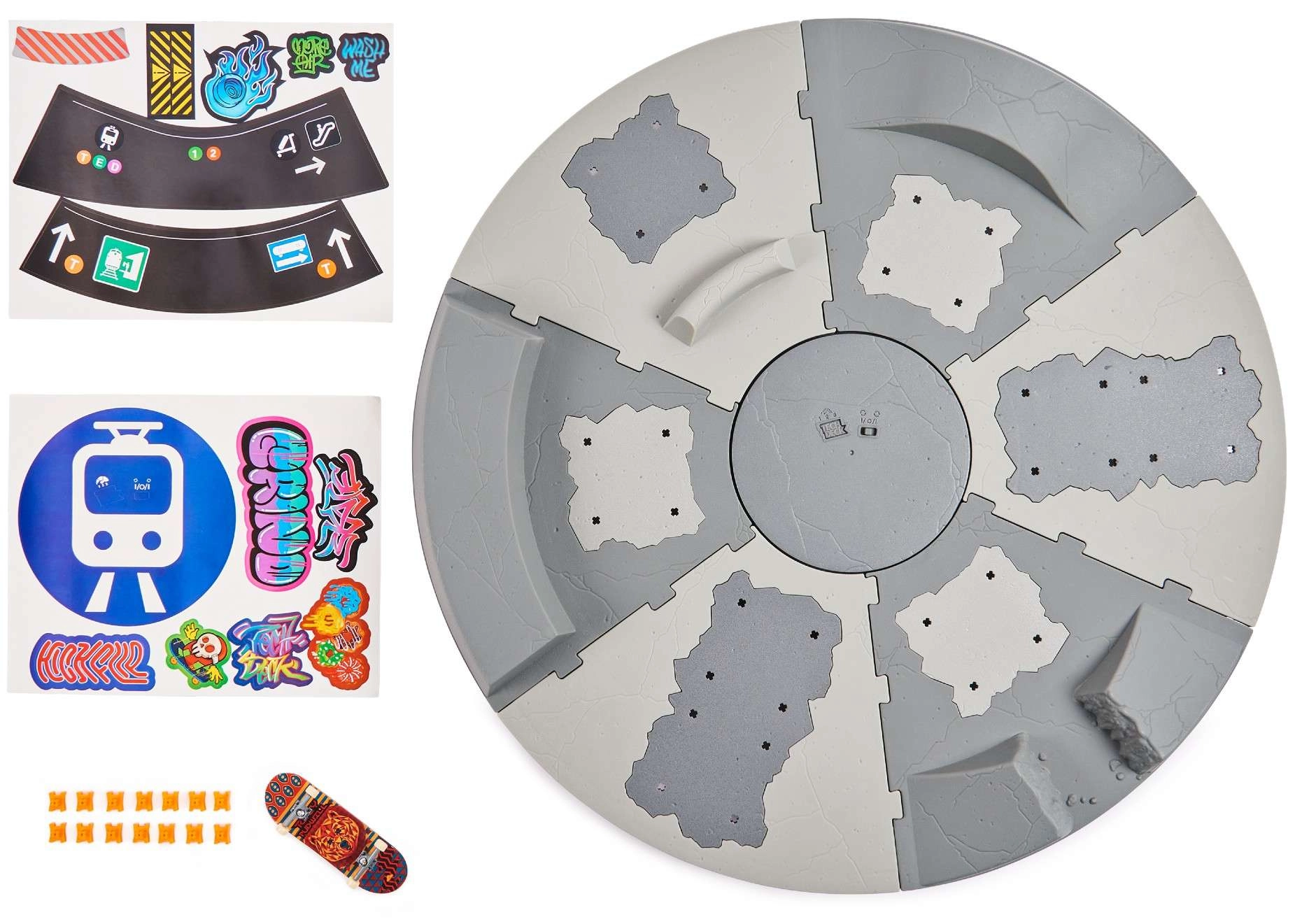 Postavi si kompakten skatepark na mizo in pokaži najboljše iz fingerboardinga. Vrtljiv podstavek s segmenti, rampami in ograjo omogoča gladko vrtenje 360°, zato lahko spreminjaš smer vožnje in zahtevnost trikov brez prestavljanja parka. Idealno za trening olliejev, grindov in manualov.