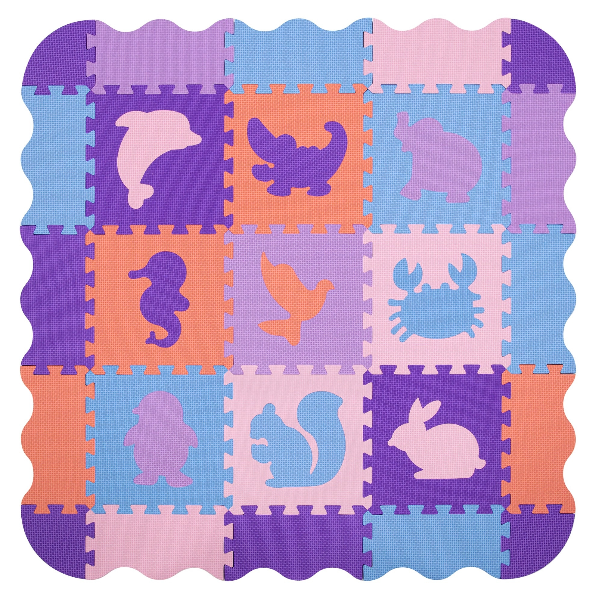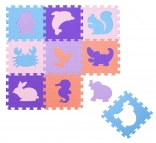 Varen material EVA je prožen, blaži udarce in odlično izolira mraz tal. Teksturirana površina je protizdrsna za prve plazeče korake in hojo. Vsak del ima odstranljiv motiv živali (pingvin, delfin, veverica, rak, golob, krokodil, zajec, morski konjiček, slon), zato si otroci urijo fino motoriko in logiko.