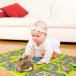 Debelina 1 cm zagotavlja odlično blaženje in izolacijo od hladnih tal. Proti zdrsu površina pomaga pri dvigovanju glavice, plazenju in prvih korakih.