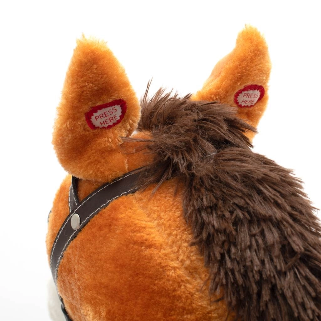 Ob pritisku na ušesa konjiček zaigra melodijo ali oddaja zvoke konjskega kasa, hkrati odpira gobček in maha z repom – popolno za razvoj domišljije.