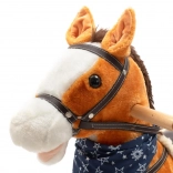 Mehka plišasta površina in prisrčni detajli, vključno z rutko, navdušijo na prvi pogled. Praktična izvedba omogoča demontažo gugalnih letev in enostavno vzdrževanje. Baterije so shranjene v ohišju na trebuščku konjička (3× AA, niso priložene).