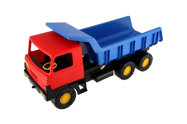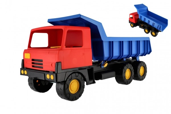 Vpadljive barve – moder zabojnik in rdeča kabina – pritegnejo na prvi pogled ter spodbujajo igro doma in na prostem. Avtomobil ima stabilna kolesa za gladko vožnjo po različnih površinah, njegova dolžina 75 cm pa ponuja veliko prostora za domiselno igro.