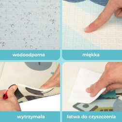 Debela 1 cm plast XPE odlično blaži udarce, izolira pred mrazom ter je brez vonja in škodljivin. Popolna za igro, plazenje in prve korake.