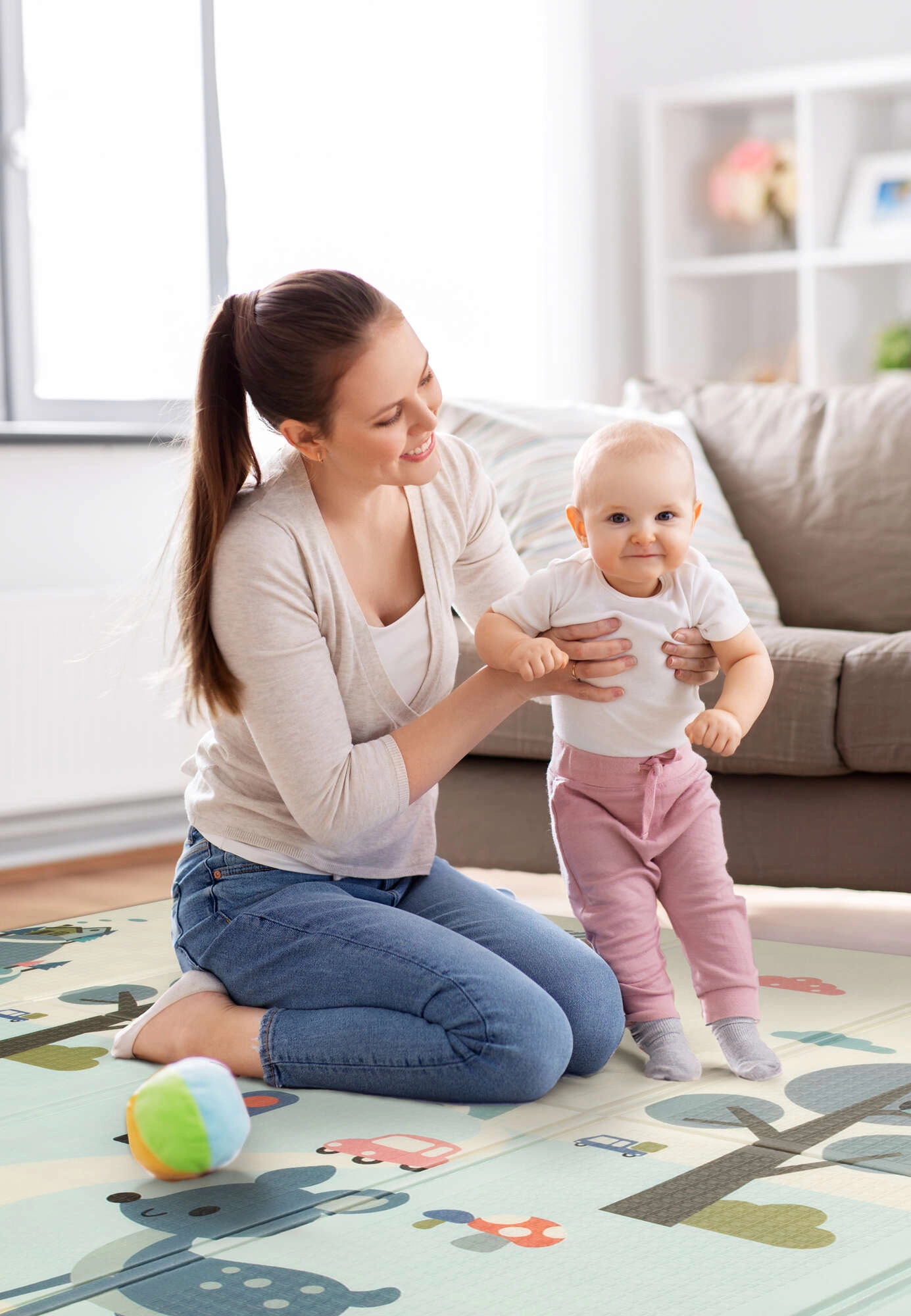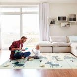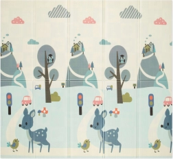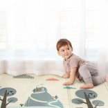 Premium pena XPE zagotavlja odlično blaženje udarcev, toplotno izolacijo od hladnih tal in dolgo življenjsko dobo. Obe strani podloge imata različne, izobraževalne potiske – nežno »gozdno pot« z ljubkimi živalicami ter kontrastne motive za vizualno stimulacijo najmlajših. Zaradi protizdrsne strukture je idealna za varno igro, čas na trebuščku in učenje plazenja ter hoje.