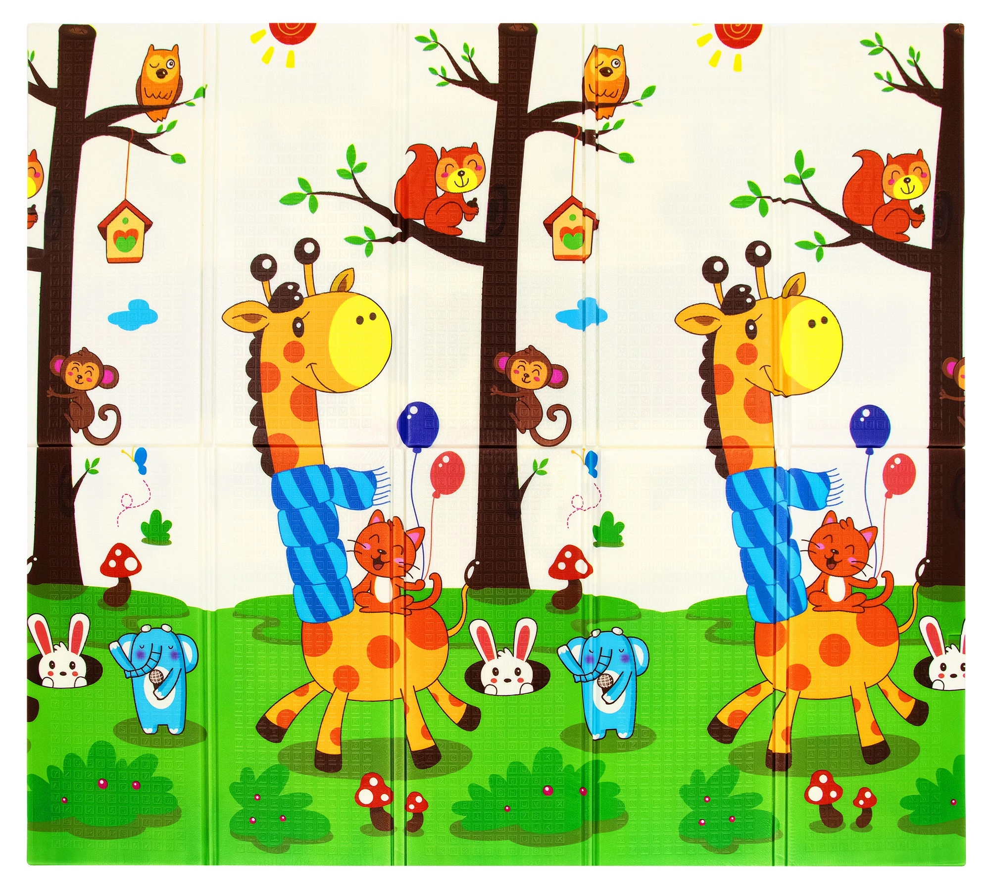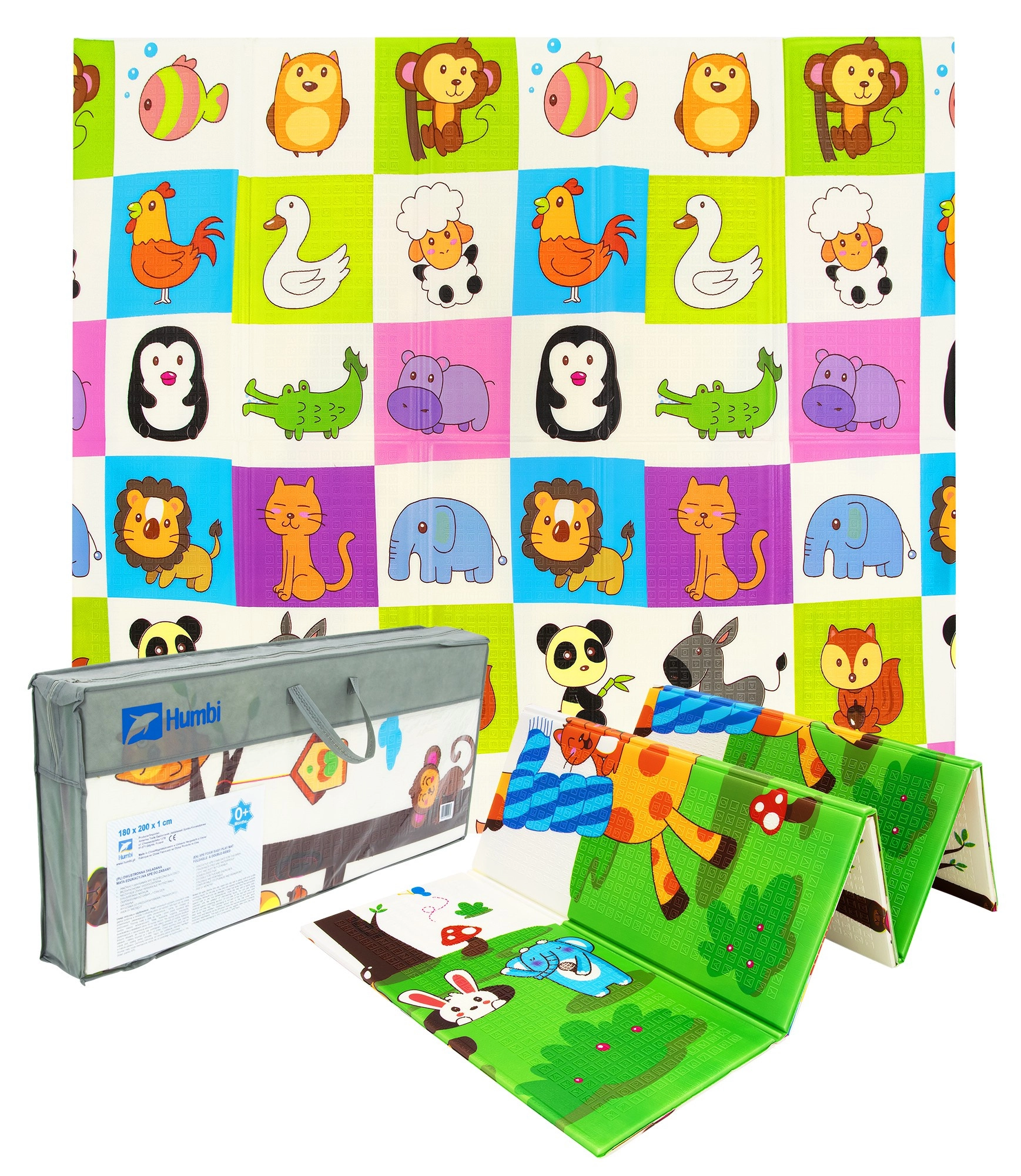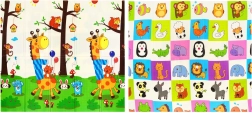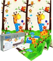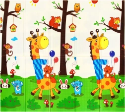 Vrhunska pena XPE podlogi HUMBI zagotavlja odlično dušenje udarcev, toplotno izolacijo pred hladnimi tlemi in dolgo življenjsko dobo. Dvostranski dizajn z žirafami in mrežastim poljem živalic spodbuja senzorični razvoj in je lep dodatek otroški sobi ali dnevni sobi.