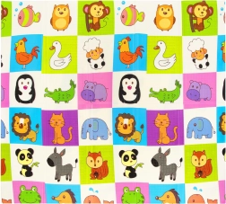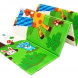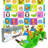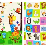 Na eni strani prikupne žirafe, na drugi pisana mozaična polja z živalmi. Spodbuja vidno zaznavanje in daje interierju igriv videz.