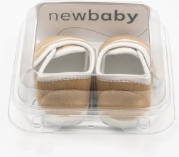 Mehki otroški copatki New Baby za najmlajše, stari 0–3 mesece, iz prijetnega ekološkega semiša. So lahki, udobni in na ježka za enostavno obuvanje. Široka notranja zasnova omogoča prost gib prstov, tanka prožna podplatnica podpira naravni razvoj stopalc, a varni PVC brez BPA zagotavlja zdravo uporabo. Idealni za voziček in domače okolje, niso namenjeni hoji.