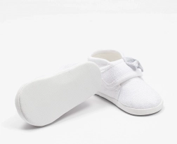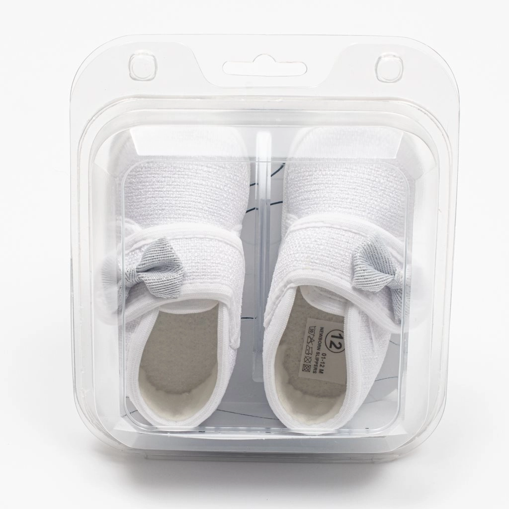 Zgornji del iz tkanine tipa lan (100% poliester) je prijeten na dotik in enostaven za vzdrževanje. Idealni za vsakodnevno nošenje doma in na obiskih. Copatki niso namenjeni hoji, a čudovito dopolnijo opravo ter ohranjajo dojenčkove nogice tople.