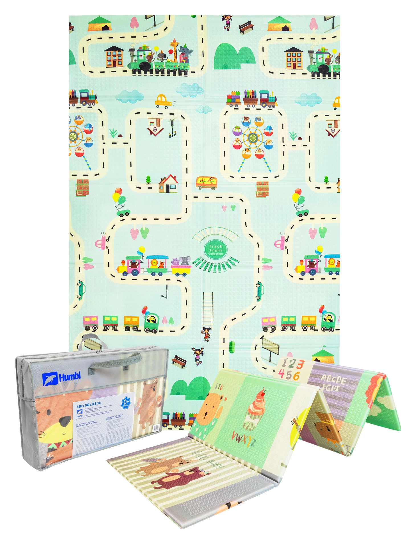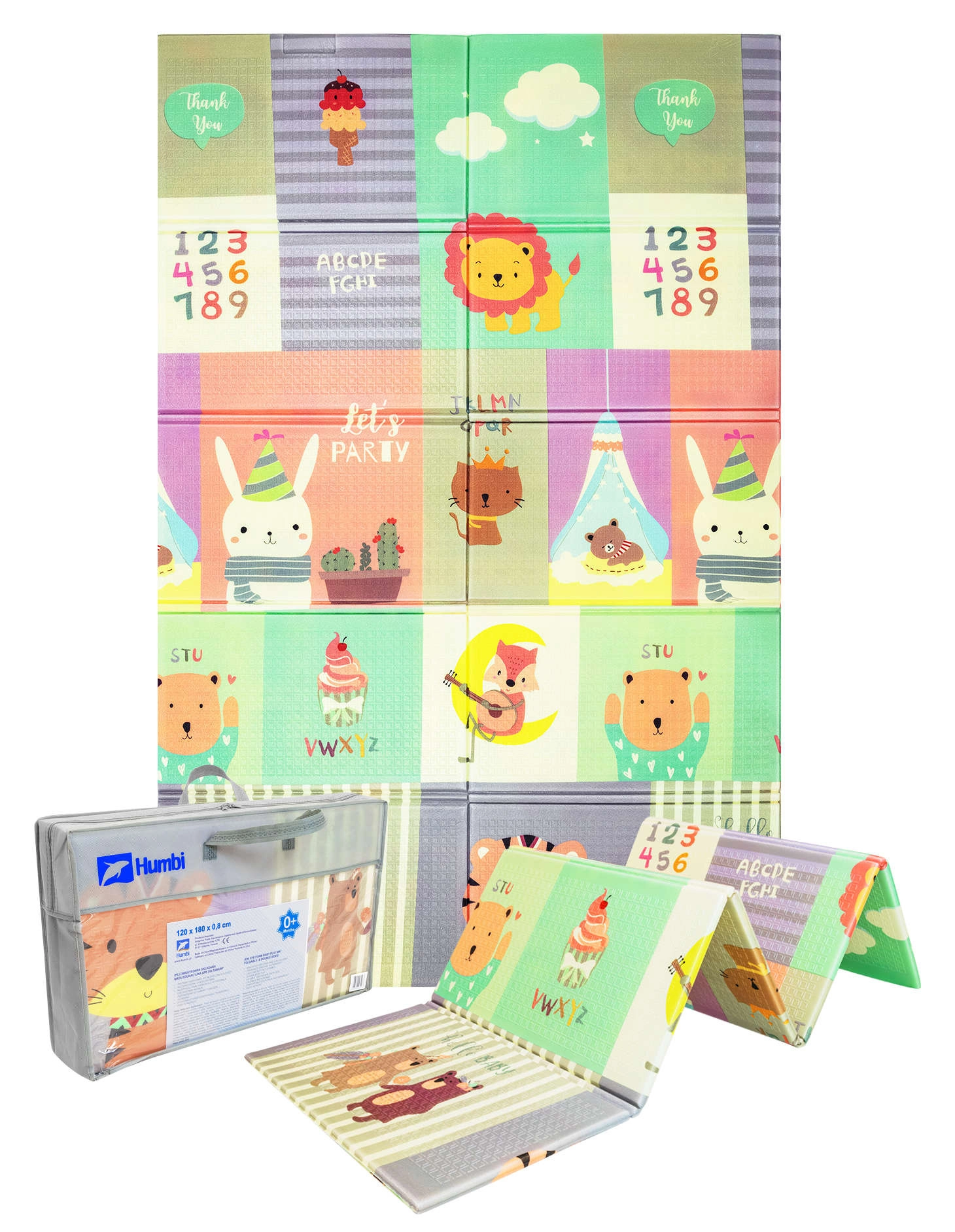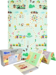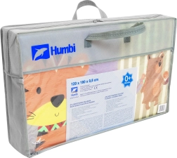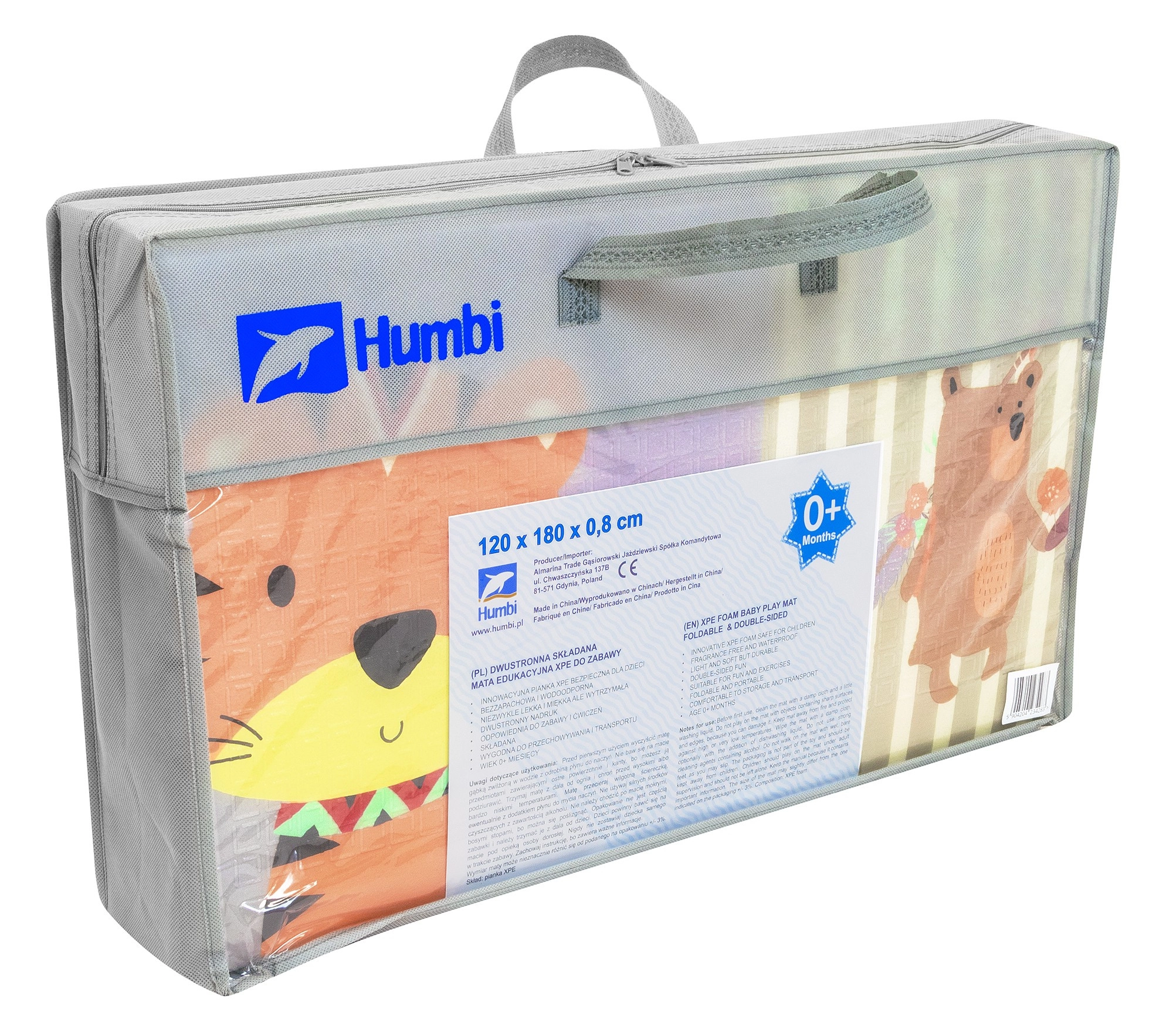 Igralna podloga HUMBI iz kakovostne pene XPE je idealna za otroško sobo, dnevni prostor ali vrt. Zahvaljujoč debelini 0,8 cm odlično izolira mraz s tal in hkrati blaži udarce pri padcih. Dvostranski dizajn ponuja na eni strani ljubke živalice v pastelnih barvah, na drugi pa pisane uličice – odlično za zabavo in razvoj čutov.