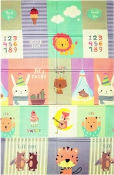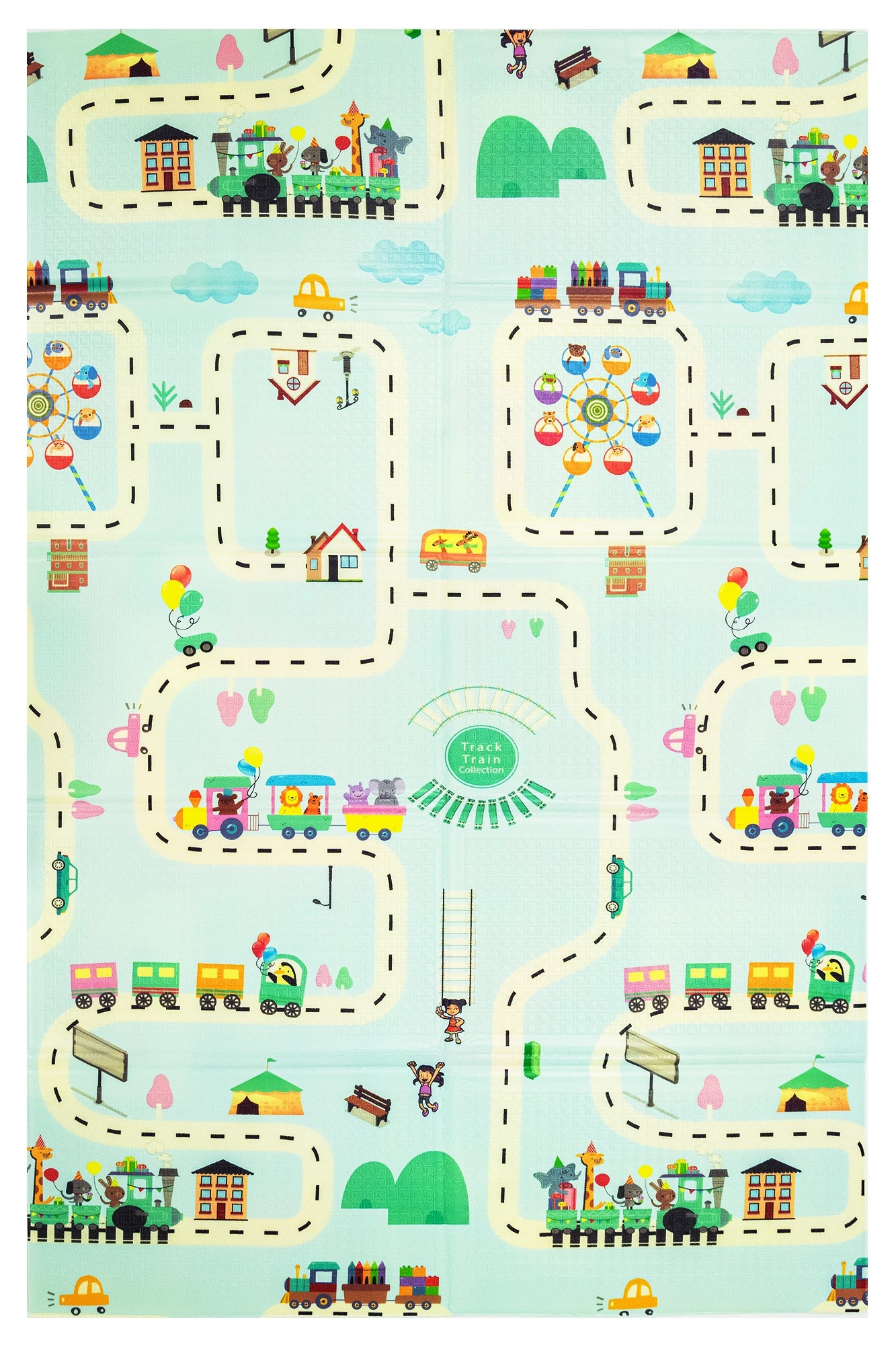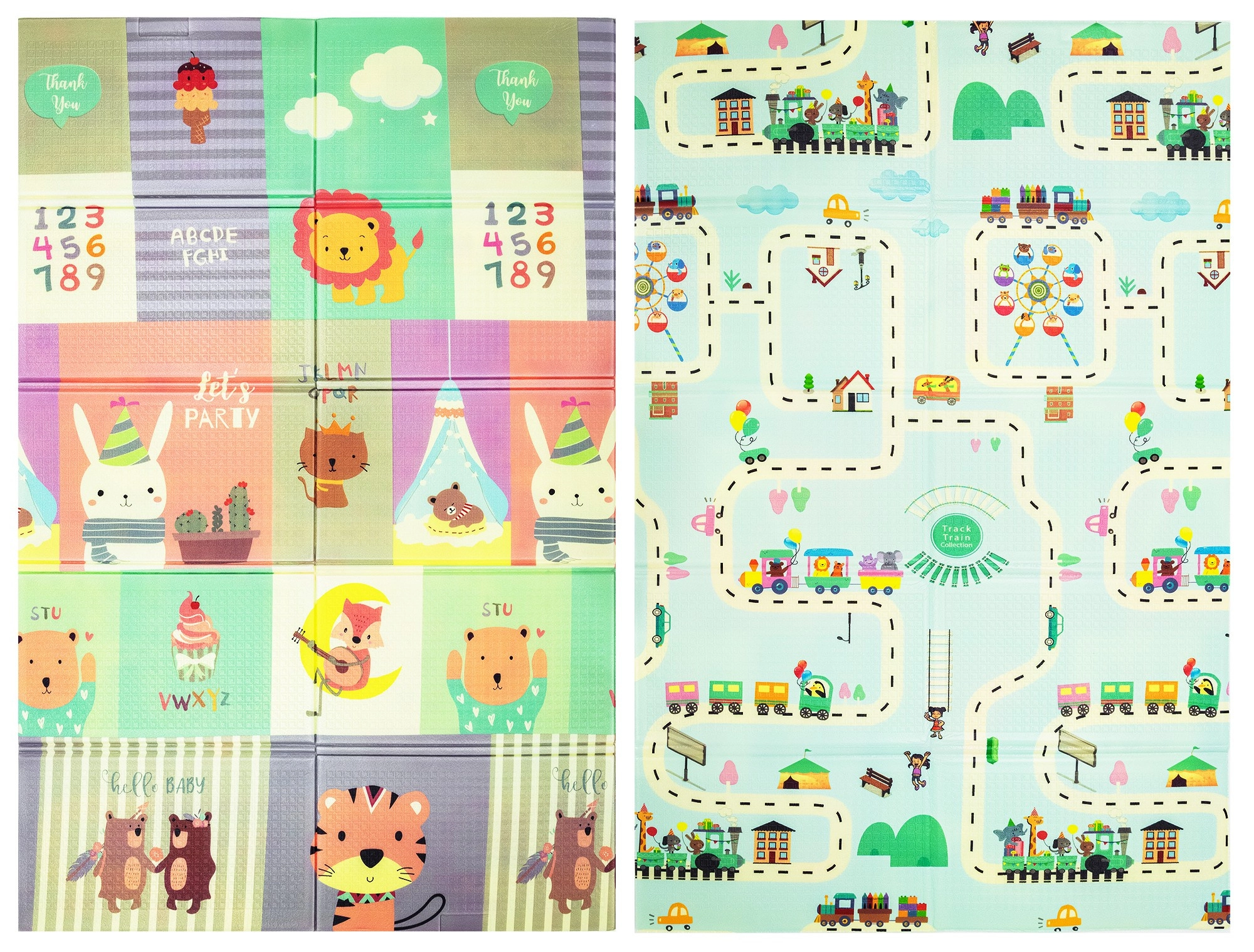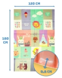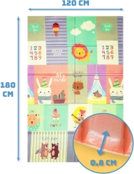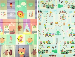 Igralna podloga HUMBI iz kakovostne pene XPE je idealna za otroško sobo, dnevni prostor ali vrt. Zahvaljujoč debelini 0,8 cm odlično izolira mraz s tal in hkrati blaži udarce pri padcih. Dvostranski dizajn ponuja na eni strani ljubke živalice v pastelnih barvah, na drugi pa pisane uličice – odlično za zabavo in razvoj čutov.