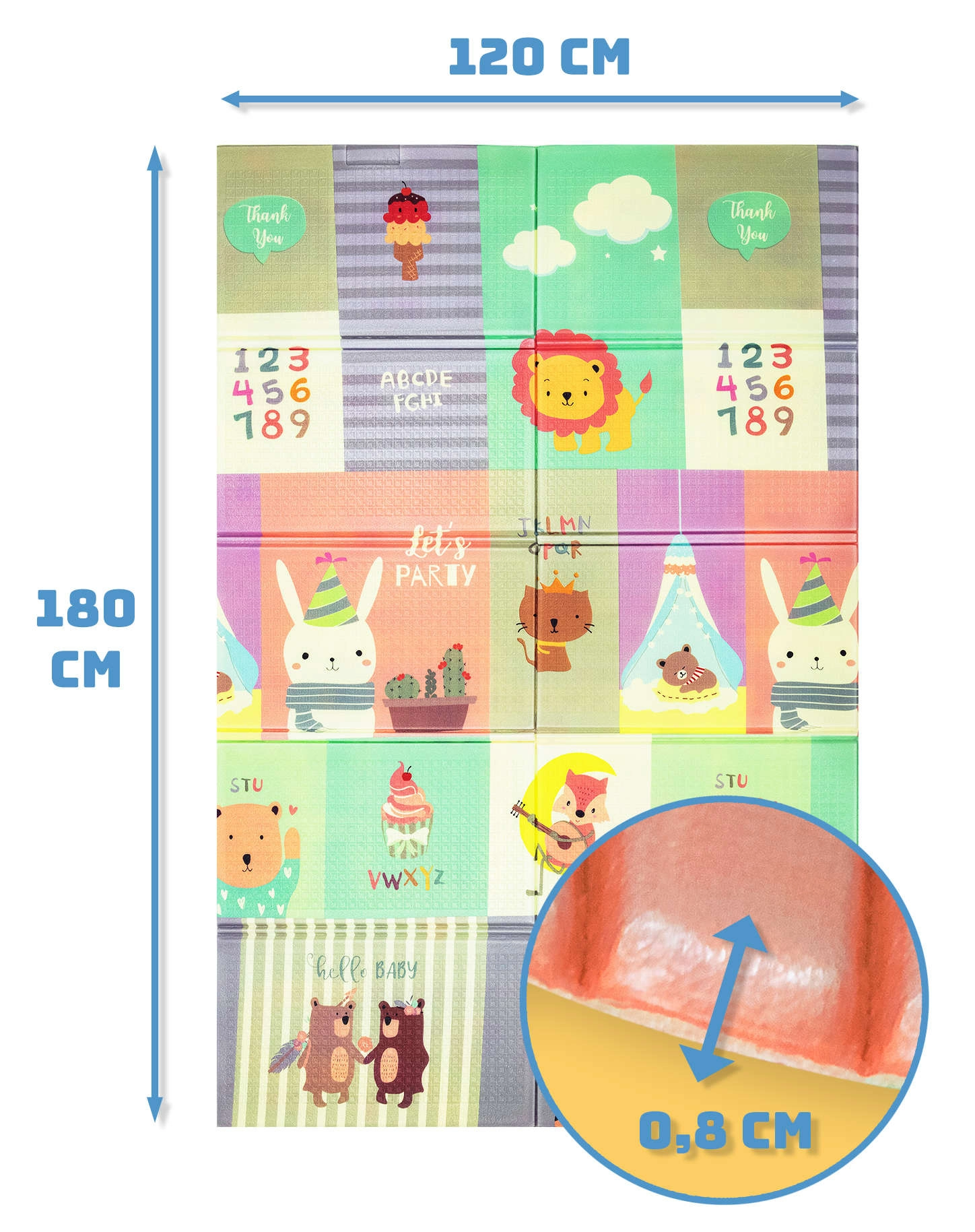 Podloga je lahka, hitro zložljiva in jo zahvaljujoč priloženi torbi z zadrgo zlahka vzamete na pot, piknik ali balkon. Material XPE je brez vonja, netoksičen, vodoodporen in enostaven za vzdrževanje – dovolj je obris z vlažno krpo. Protizdrsna struktura z nežnim reliefom podpira varno plazenje in hojo ter spodbuja senzorični razvoj.
