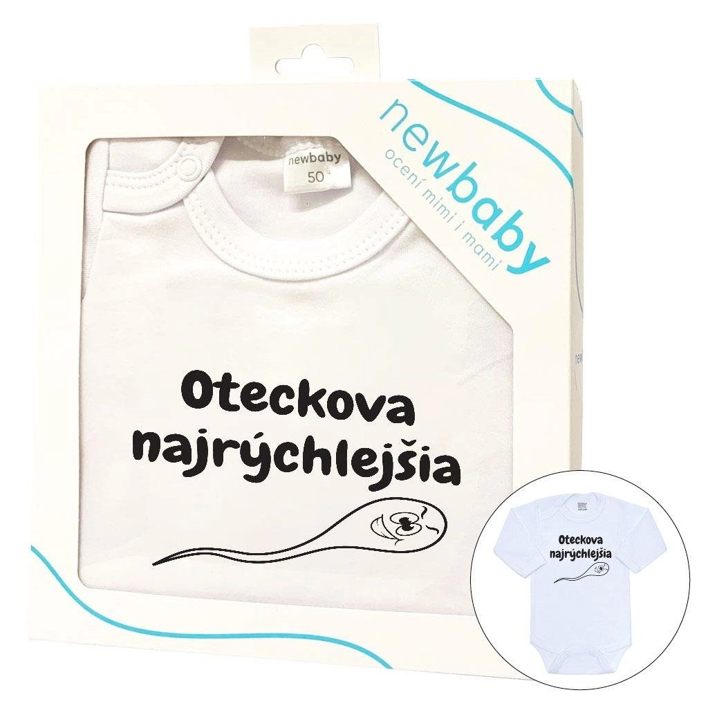 Izviren dojenčkov bodi New Baby združuje udobje in nasmeh v enem. Nežen in zračen material iz 100 % bombaža je prijazen do občutljive otroške kože, medtem ko kakovosten potisk z besedilom OČKOVA NAJHITREJŠA poskrbi, da bo vaš dojenček nepogrešljiv in opažen.