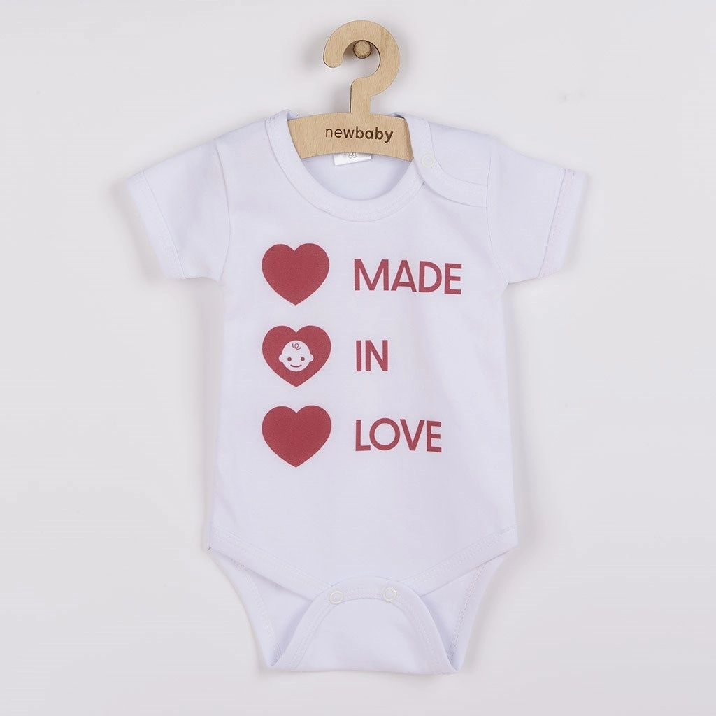 Modni bodi New Baby z napisom MADE IN LOVE je odlična izbira za vsakodnevno nošenje ali kot prijetno darilo. Kakovosten mehak bombaž je prijazen do občutljive otroške kože in zagotavlja udobje skozi ves dan. Tisk je narejen iz certificiranih barv, varnih za dojenčke.