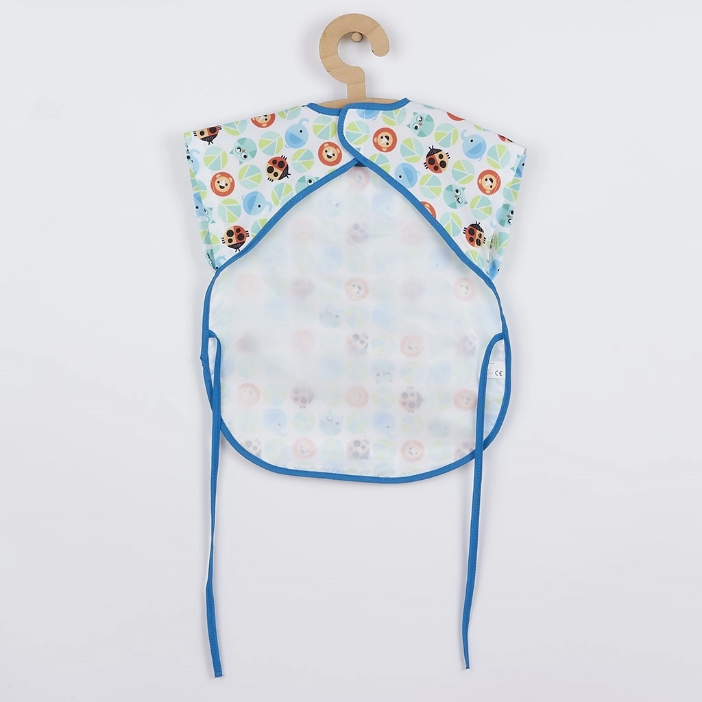 Slinček–predpasnik New Baby je idealen pomočnik za vsakodnevno hranjenje in ustvarjanje. Dve plasti materiala zagotavljata udobje in zaščito: zgornja je prijetno mehka in lahka, spodnja je nepropustna, zato oblačila ostanejo čista in suha. Zapiranje na ježka omogoča hitro oblačenje in slačenje.