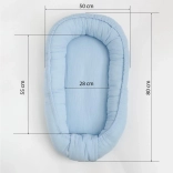 Muselinsko gnezdece New Baby je izdelano iz izjemno nežne bombažne tkanine, prijazne do občutljive otrokove kože. Dojenčku nudi prijeten, omejen prostor, v katerem se počuti varno in blizu mamice. Gnezdece zlahka prenesete, zato lahko vaš malček počiva v svojem znanem okolju tudi na potovanjih.