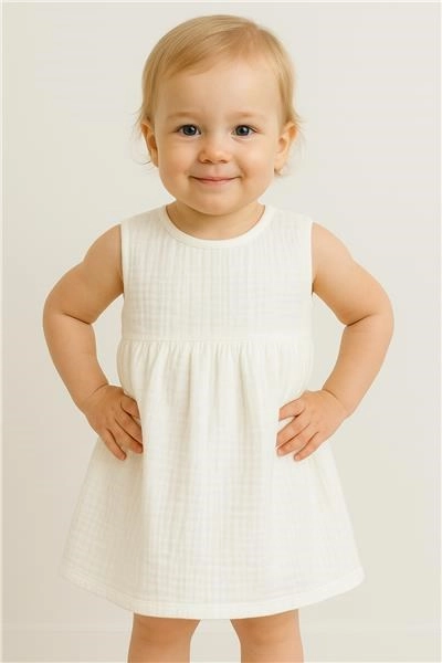 Musetlin iz čistega bombaža je izjemno lahek, zračen in z vsakim pranjem še mehkejši. Zaradi svoje zračne strukture pomaga uravnavati temperaturo in zmanjšuje tveganje pregrevanja, zato je obleka odlična za tople dni.