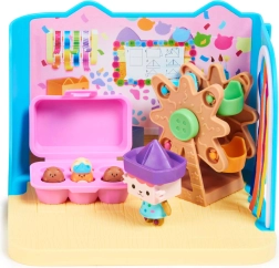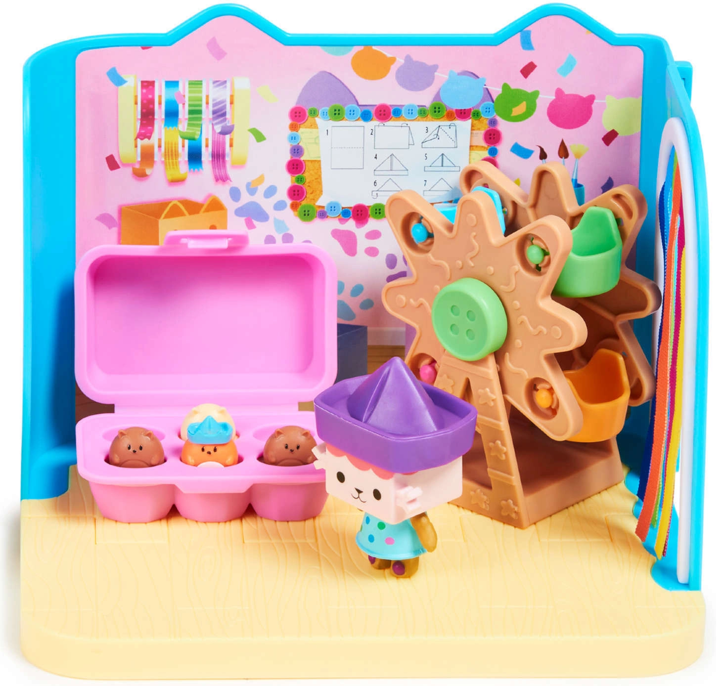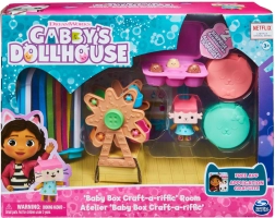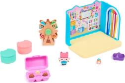 Set »Baby Box Craft-a-riffic Room« je originalen dodatek k igralnemu sistemu Gabby’s Dollhouse – lahko se uporablja samostojno ali poveže z veliko hišico.