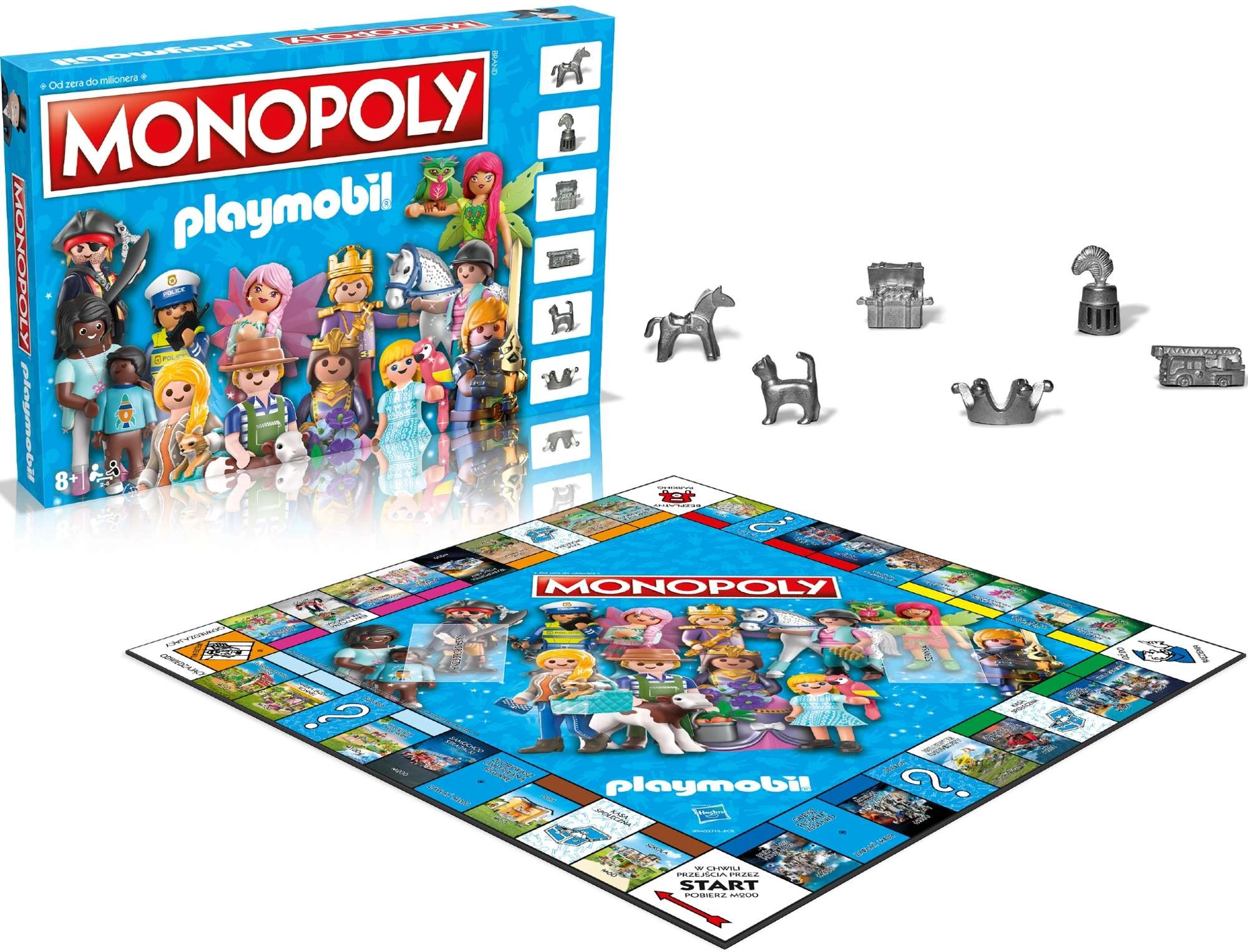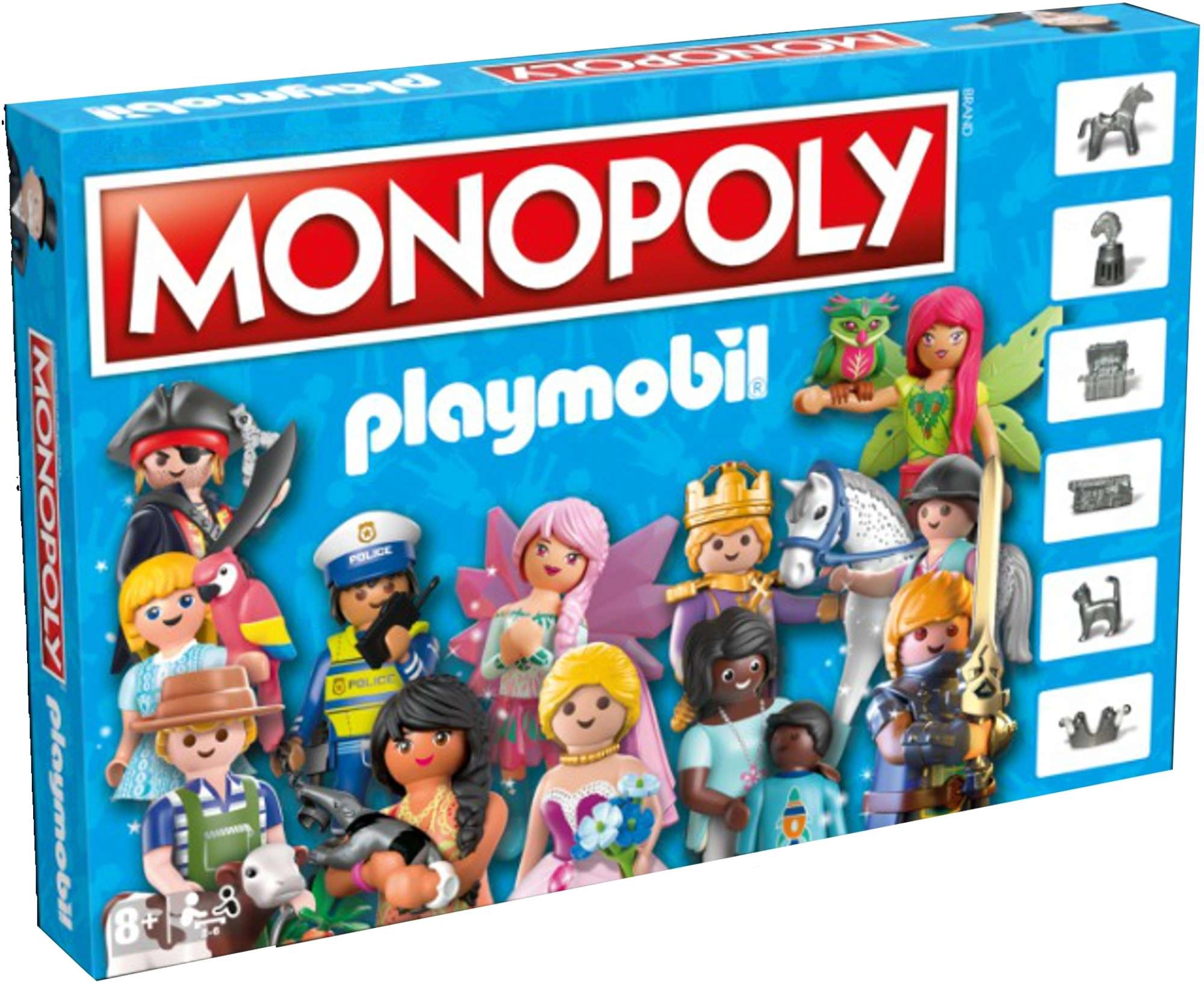 Monopoly Playmobil prinaša priljubljeno trgovsko igro v novi ediciji, navdihnjeni s svetom PLAYMOBIL. Razgrnite igralno ploščo, izberite enega od 6 zbirateljskih figuric/pionov, vrzite kocki in se podajte na pot do zmage. Kupujte lokalne lokacije, vlagajte v hiše in hotele, pobirajte najemnino in zmagajte s premeteno trgovino.