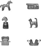 Igralna plošča, 16 kart »Priložnost«, 16 kart »Blagajna«, 28 kart »List lastništva«, 6 zbirateljskih figuric/pionov, paket bankovcev MONOPOLY, 32 hišic, 12 hotelov, 2 kocki in pravila.