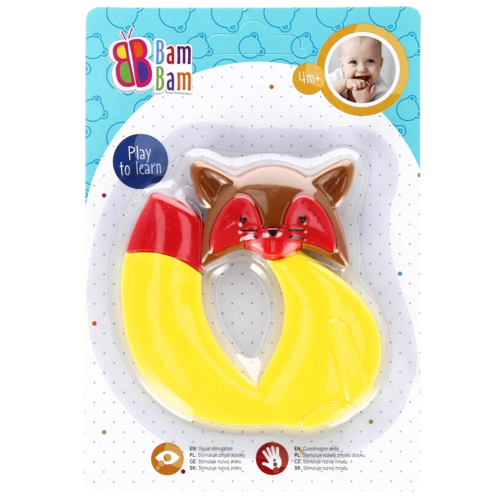 Odkrijte nežnega pomočnika za obdobje izraščanja zobkov. Mehko grizalo v obliki lisičke zagotavlja nežno masažo dlesni ter prinaša otrokom olajšanje in zabavo. Zaradi premišljene oblike in lahke zasnove ga dojenčki zlahka primejo, držijo in z njim rokujejo.
