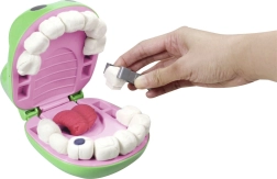 Odpirajoča se čeljust s podrobnimi dlesnimi in prostorom za vstavljanje ali »zdravljenje« zob. Odlično za vadbo vloge zobozdravnika in za pogumne prve preglede.