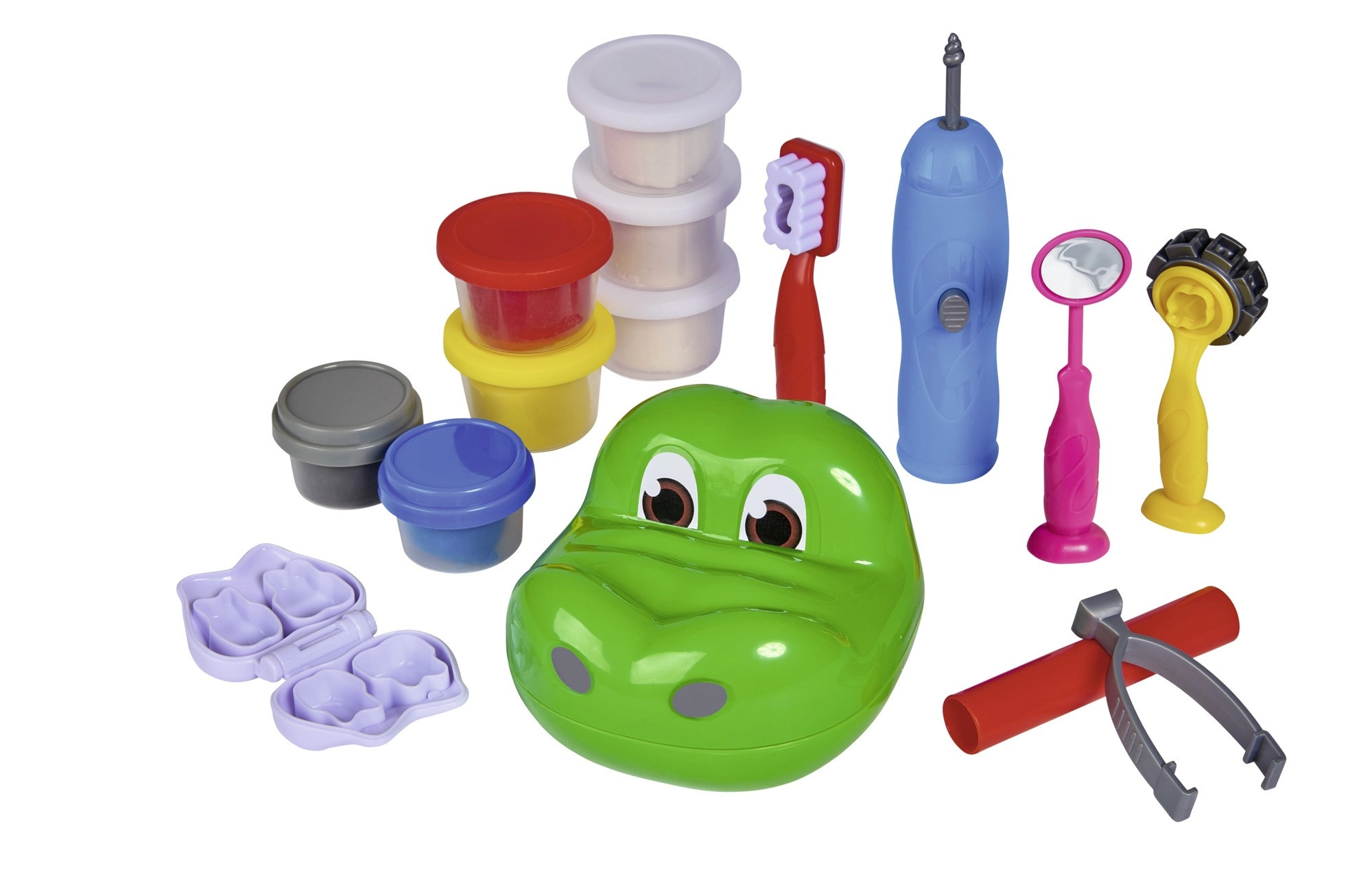 Zabaven ustvarjalni set za male zobozdravnike z likom krokodila, kakovostno modelirno maso in orodji znamke SIMBA iz serije ART&FUN. Otroci lahko izdelujejo zobe, vrtajo karies, plombirajo, namestijo zobni aparat in vadijo ustno higieno. Igra z modelirno maso razvija fino motoriko, ustvarjalnost in domišljijo – hkrati pa pomaga premagati strah pred zobozdravnikom.