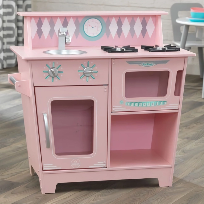 Otroška kuhinja KidKraft ponuja številne funkcije, ki razvijajo otroško domišljijo. Opremljena je z pomivalnim koritom, večfunkcijskim štedilnikom in mikrovalovno pečico. Podrobno dodelane plošče in vrtljivi gumbi, ki oddajajo klikajoče zvoke, prispevajo k realistčnemu doživetju igre.