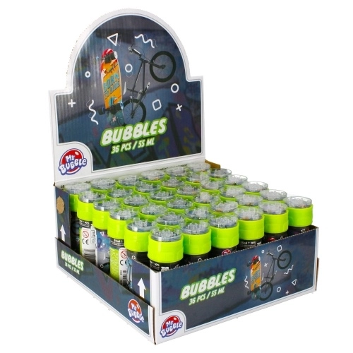 Bublifuk BMX Skate 55 ml prinaša veliko veselja pri pihanju mavričnih mehurčkov. Zahvaljujoč kakovostni tekočini nastajajo stabilni, bleščeči mehurčki, ki so odlični za vrt, igrišče in otroške zabave. Vsak pokrovček vsebuje tudi zabavno krogličasto igro z labirintom, zato je za zabavo poskrbljeno tudi med odmorom.