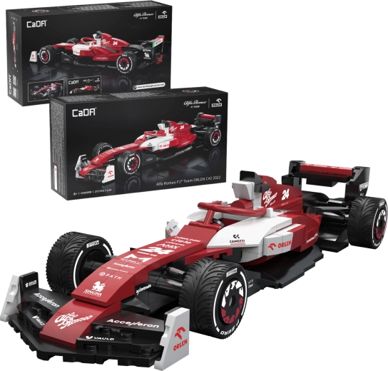 Uživajte v natančnem modelu dirkalnega vozila ALFA ROMEO C42 z rdečo karoserijo in kontrastnimi detajli, ustvarjenem z poudarkom na realističnih podrobnostih. Komplet izstopa s funkcionalnim dizajnom, prisotnostjo varnostnega halo in elementi, navdihnjenimi z aerodinamiko F1 za maksimalno pristnost razstavljenega modela.