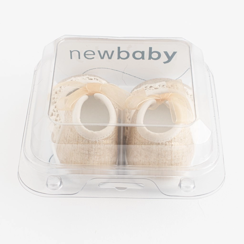 Čeveljčki so izdelani iz fine čipke (100 % poliester) in imajo tanek sintetičen podplat iz PVC brez BPA. Zaradi zelo majhne teže so dojenčku prijetni za nošenje, tako doma kot ob slavnostnih priložnostih. Dobavljajo se v praktični darilni škatlici.