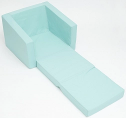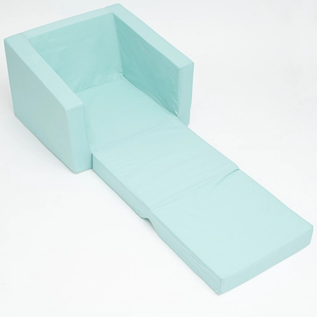 Otroški raztegljivi naslanjač NEW BABY Elephant v mint barvi je priljubljen in praktičen dodatek za otroško sobo. Izdelan je iz mehke poliuretanske pene, ki je lahka, udobna in varna za najmlajše. Prevleka iz 100 % bombaža je prijetna na dotik, krasi jo ljubek motiv slončka, zahvaljujoč zadrgi pa jo je mogoče enostavno sneti in oprati.