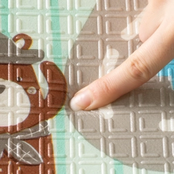 Premijska pena XPE je brez vonja, netoksična in trpežna. Zahvaljujoč debelini 0,8 cm odlično izolira pred mrazom in nudi blaženje udarcev pri padcih. Protizdrsna, rahlo reliefna struktura podpira varno plazenje in hojo ter hkrati stimulira senzorični razvoj otroka.