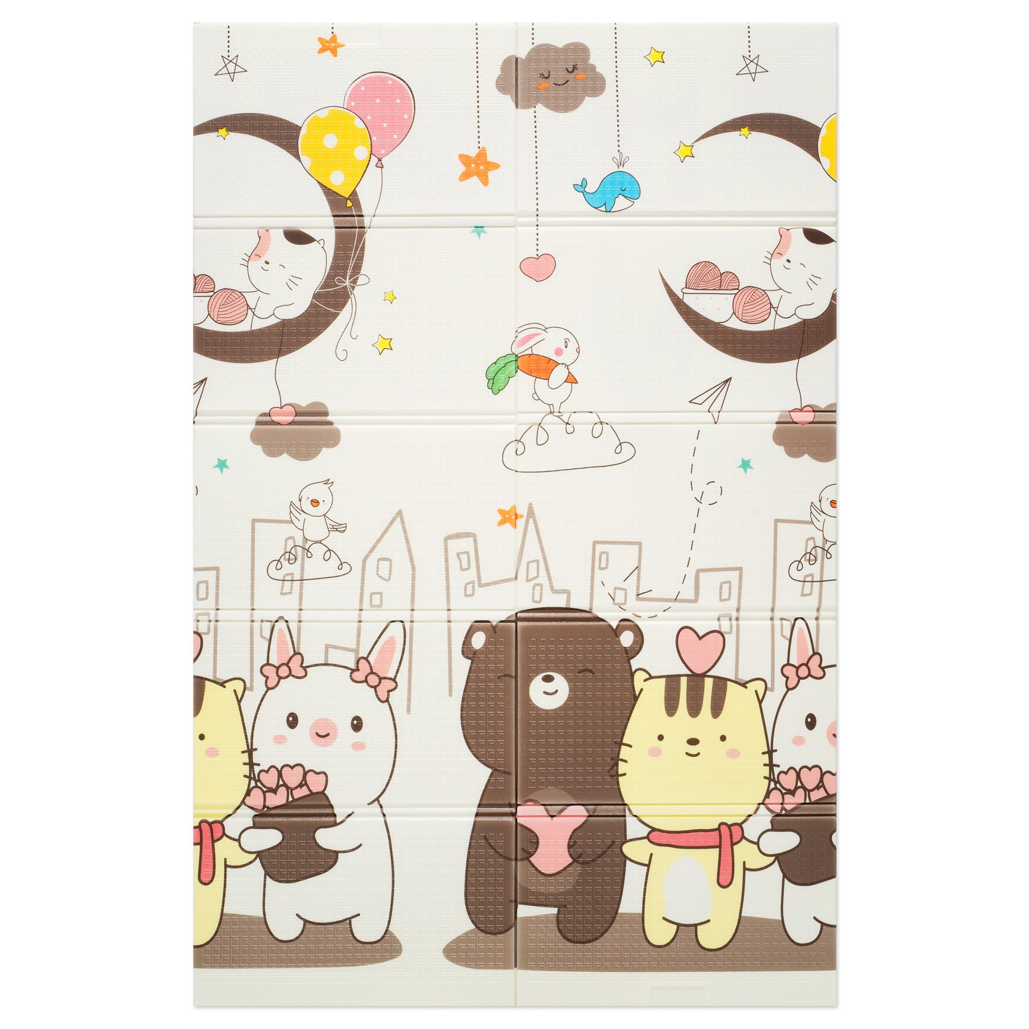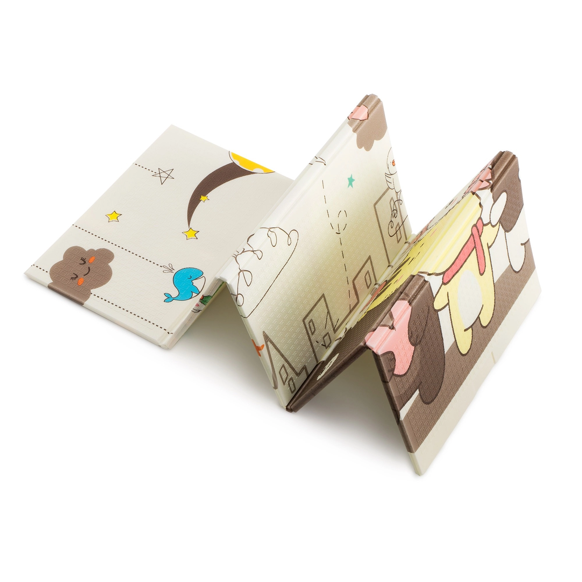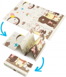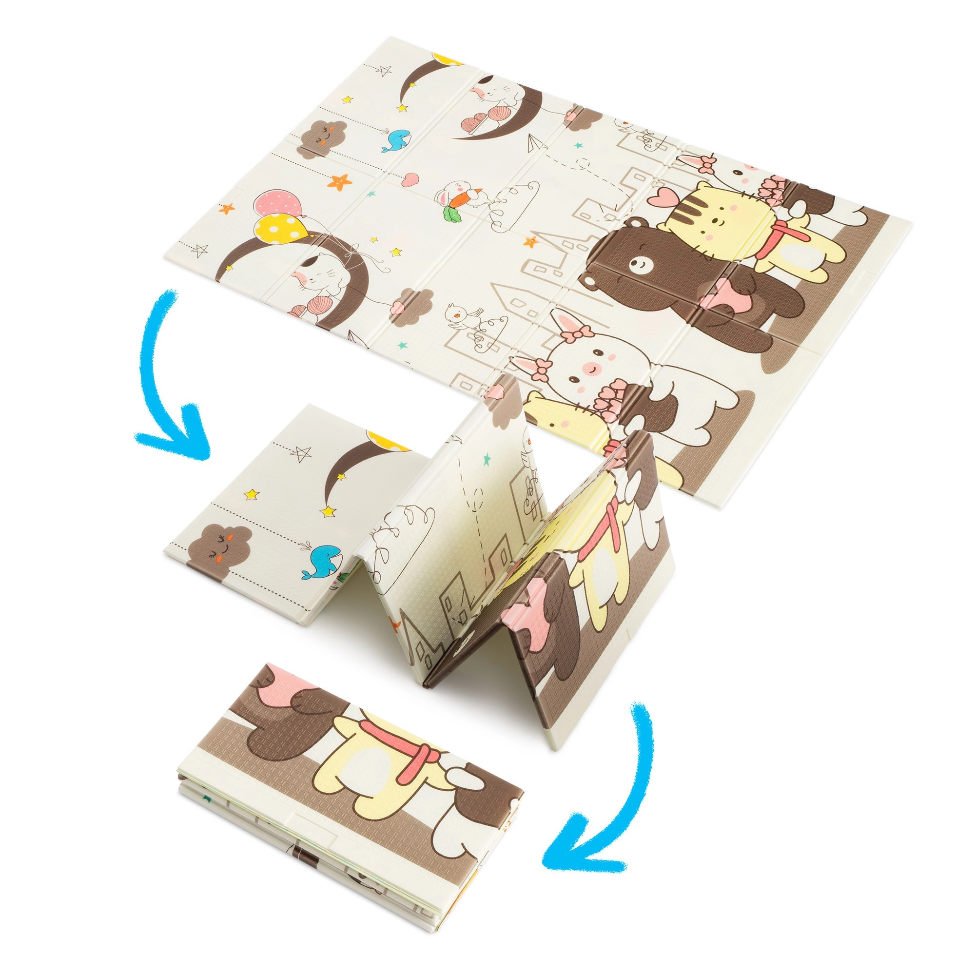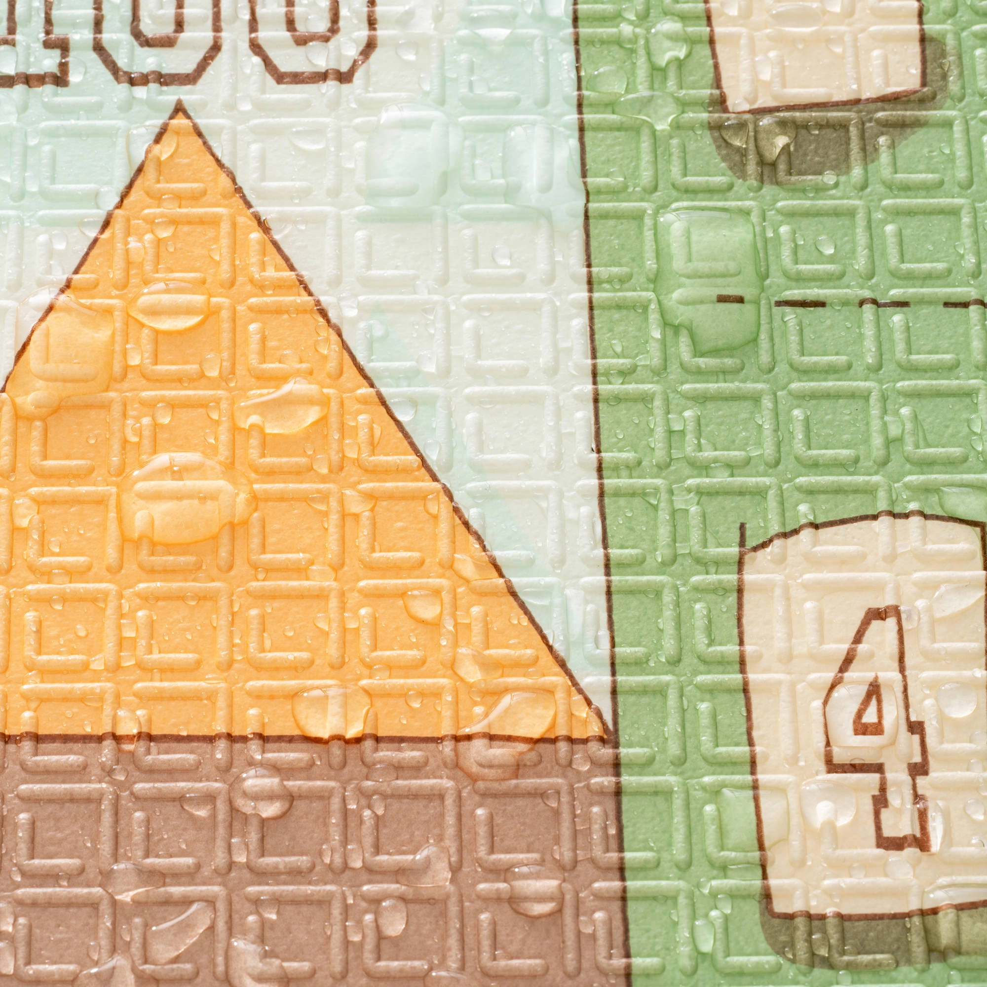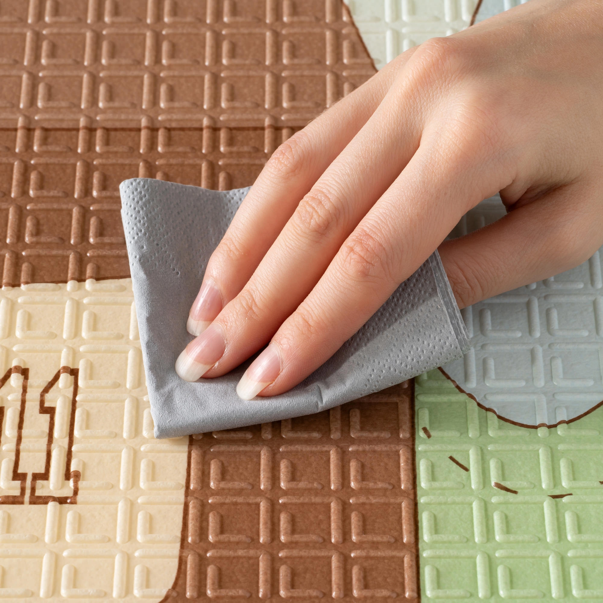 Podloga je zložljiva v kompaktne sekcije – v nekaj sekundah jo razprete in pospravite. Vodoodporna in enostavna za čiščenje površina zadostuje, da jo obrišete z vlažno krpo, zato je idealna tudi za alergike: ne zadržuje prahu ali pršic. Paket vključuje zapiralno torbo z ročaji za priročno prenašanje doma, na vrtu, pikniku in na poti.